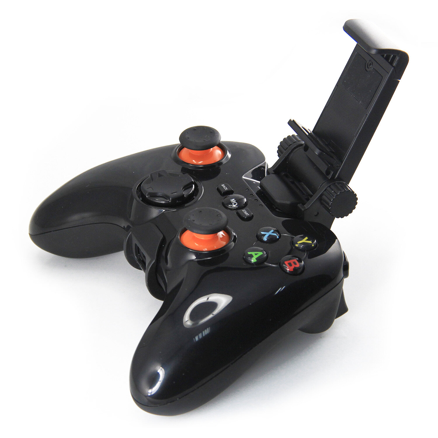 Корпус изготовлен из качественного пластика, обеспечивающего прочность корпуса и отсутствие люфтов. В комплекте с геймпадом идёт держатель для смартфонов для максимального удобства.