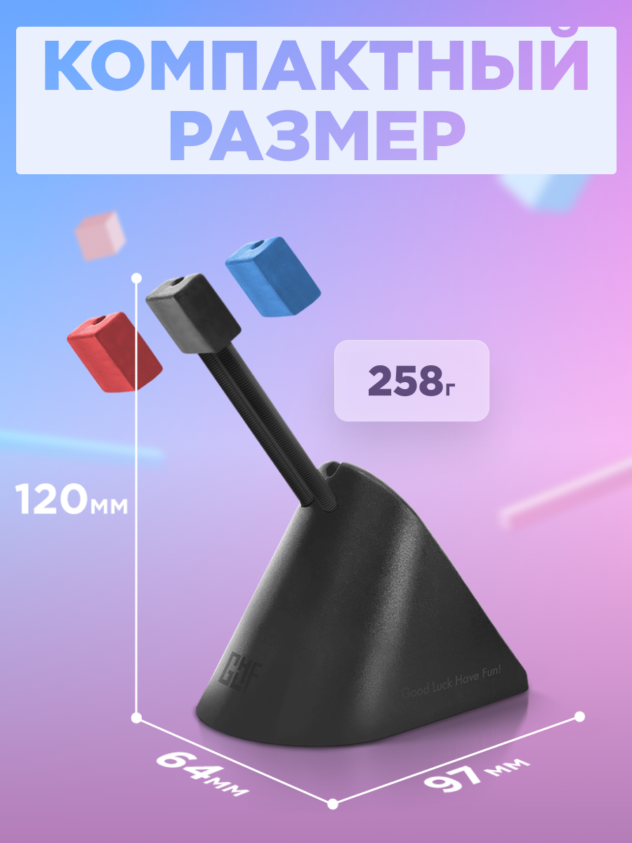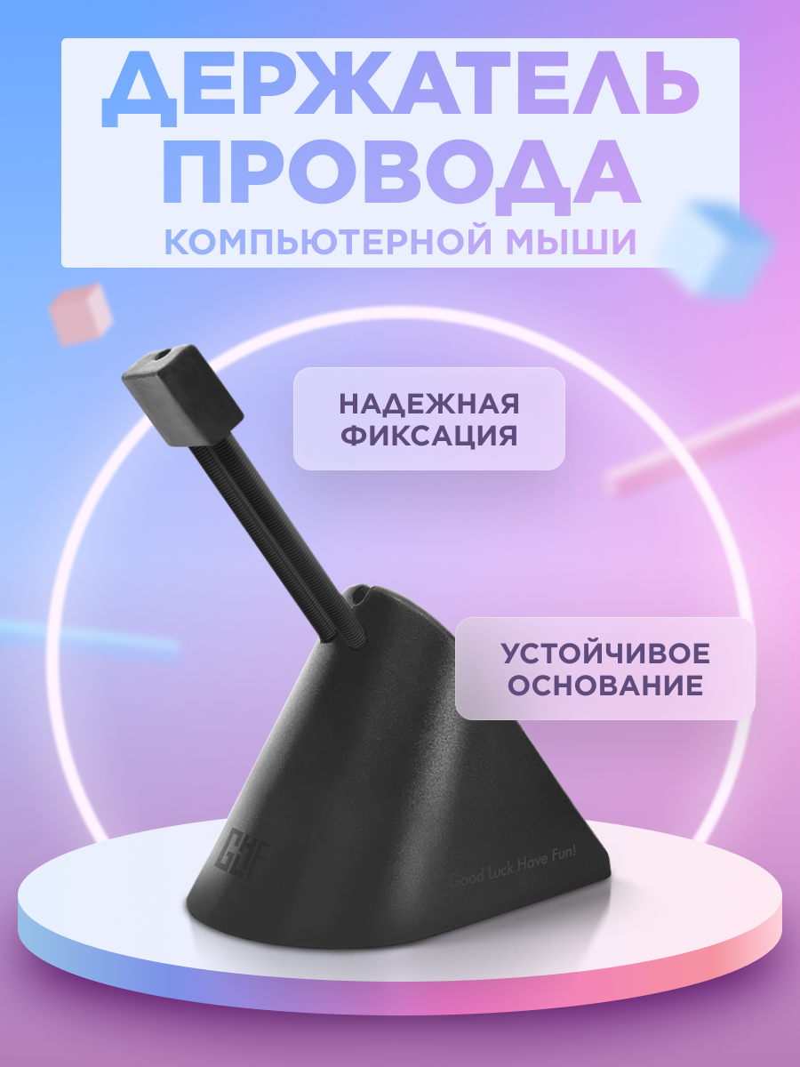 Сделайте ваши ощущения от управления мышью более плавными с удобным держателем провода для мыши от GLHF! А три сменные клипсы на штанге позволят подстроить дизайн под цвет сетапа или ваше настроение.