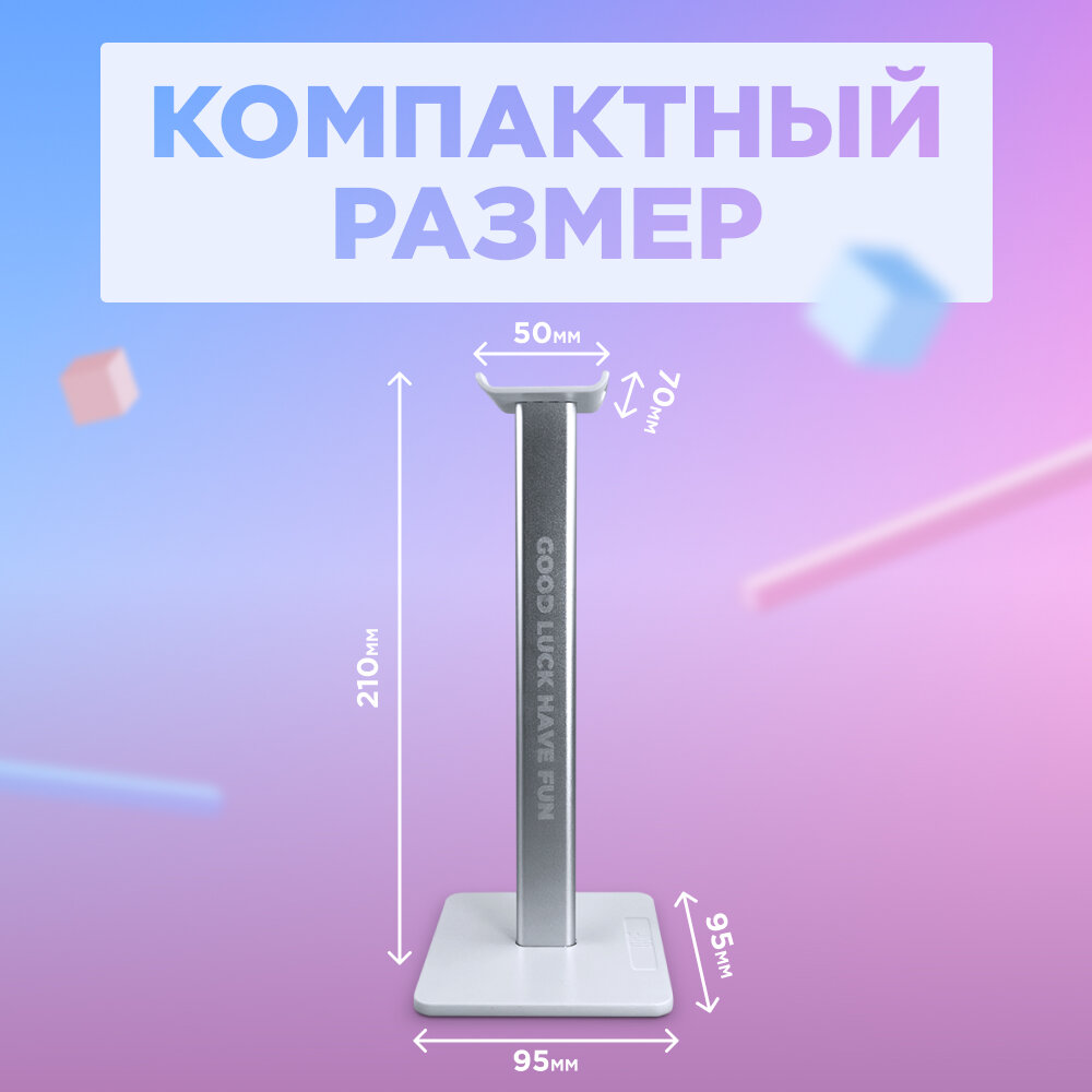 Компактный держатель легко собрать и разобрать, что делает его незаменимым спутником для гарнитуры или наушников в любой поездке. Высота подставки в собранном виде - 21 см.