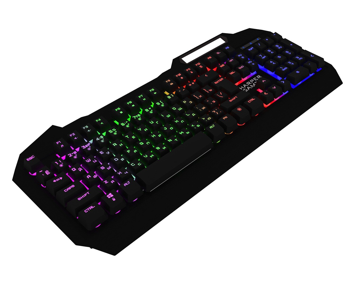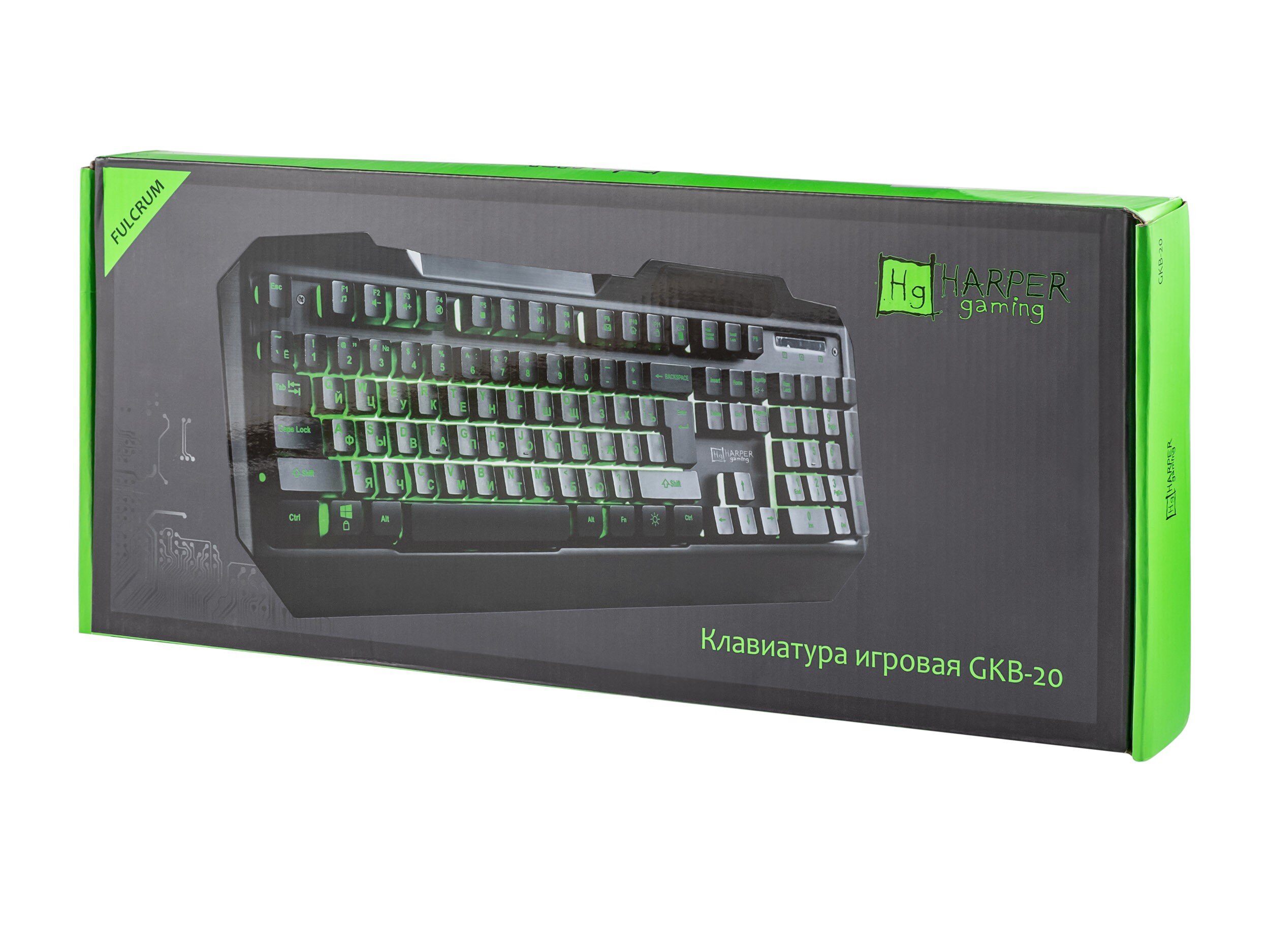 Harper Gaming Fulcrum GKB-20 – прочная и яркая полноформатная клавиатура с подсветкой и подставками для смартфонов.