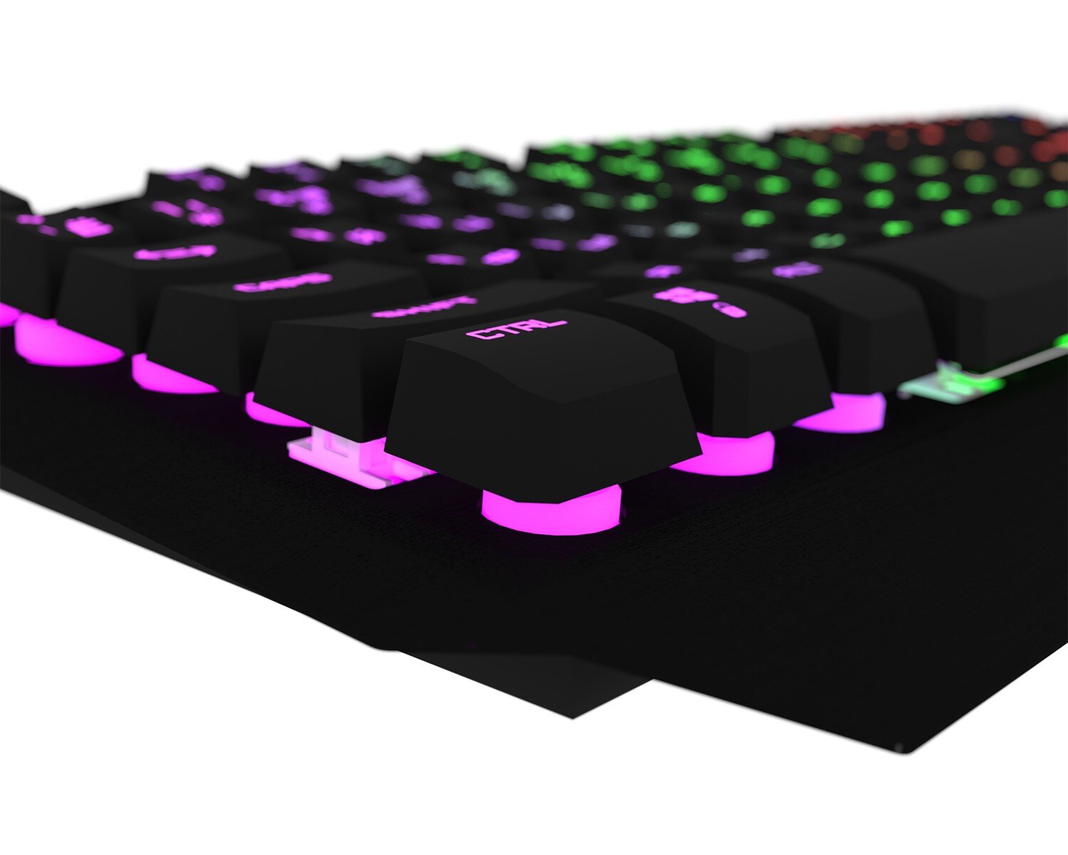 Броский дизайн, яркая подсветка с продвинутыми настройками (масса эффектов, цветов и отдельных зон), а главное – мгновенная реакция на нажатия, неблокируемые клавиши и прочный алюминиевый корпус.