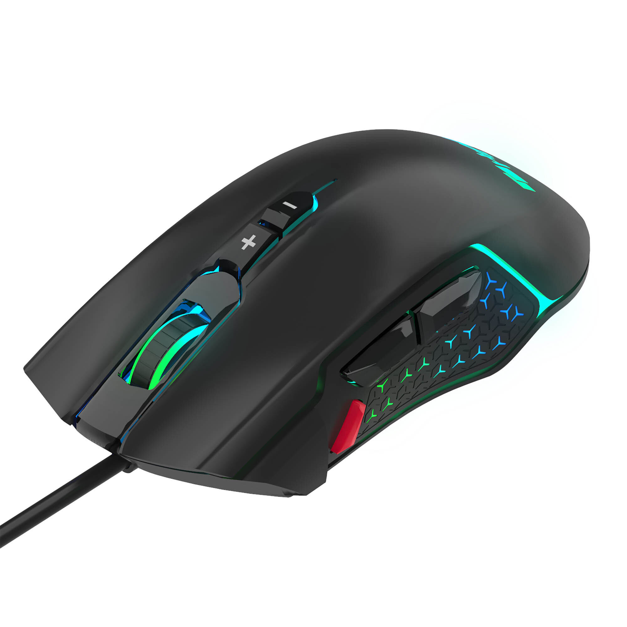 Мышь оснащена высокоточным сенсором PixArt PMW3327 с максимальным разрешением до 12000 DPI. Разрешение можно менять прямо во время игры, подстраиваясь под определённый класс или оружие. Также Hiper DRAKKAR оборудована подсветкой, прочными микропереключателями с ресурсом в 5 млн нажатий, 1,5-метровым кабелем для подключения к компьютеру.