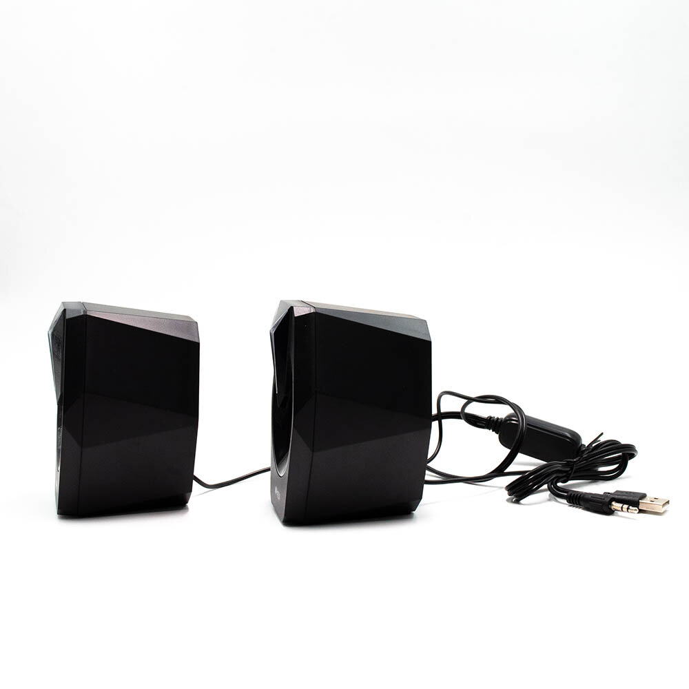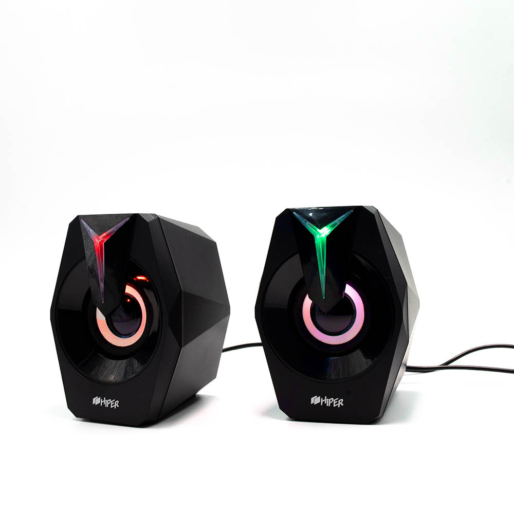 Это компактная активная акустическая система 2.0, выполненная в агрессивном игровом дизайне, имеющая скромные габариты 10 x 7.1 x 7.7 сантиметров. Корпус колонок сделан из пластика, мощность усилителя 10 Вт, мощность выходная 6 Вт. Плавно переливающаяся семицветная подсветка создаст неповторимую атмосферу и поднимет ваше настроение!