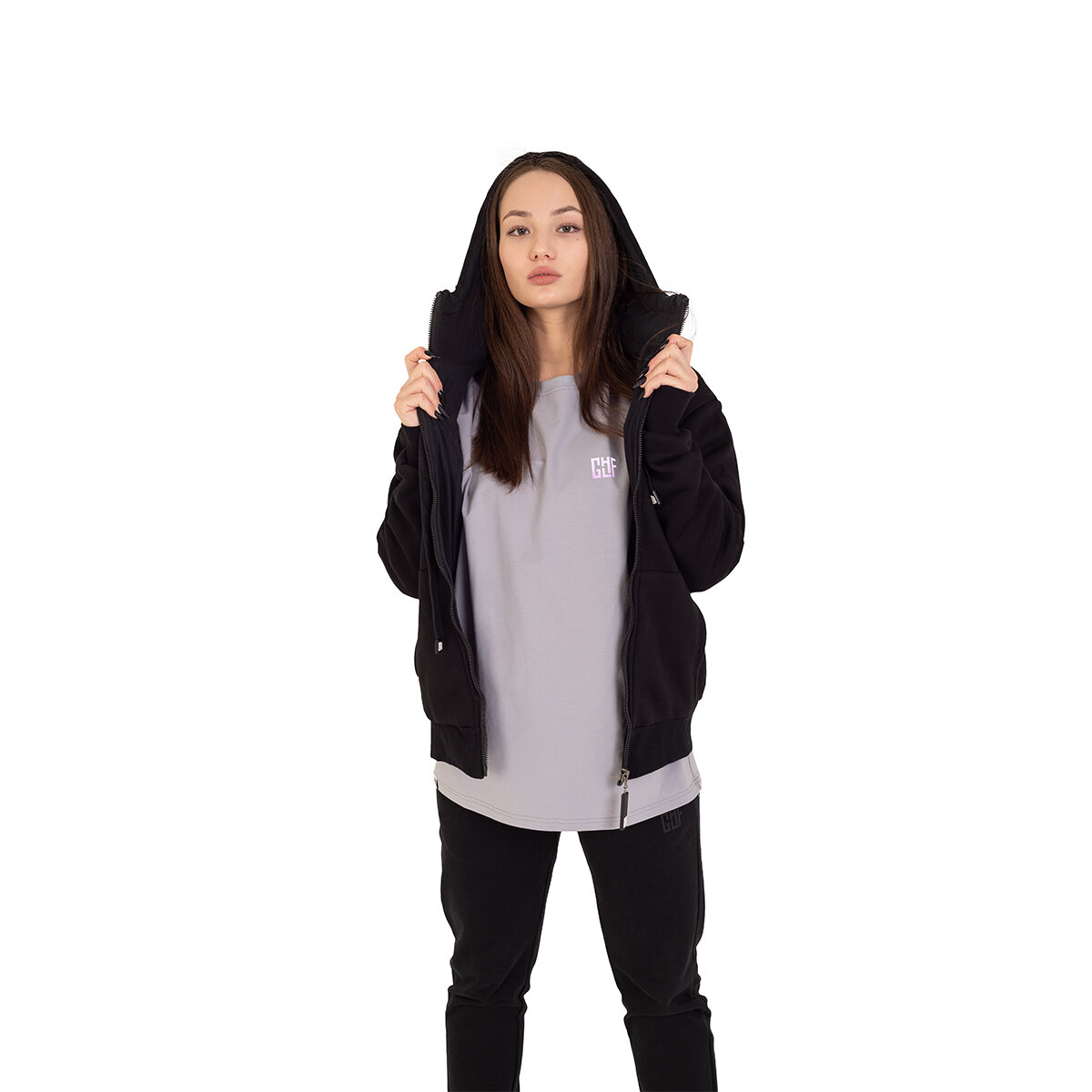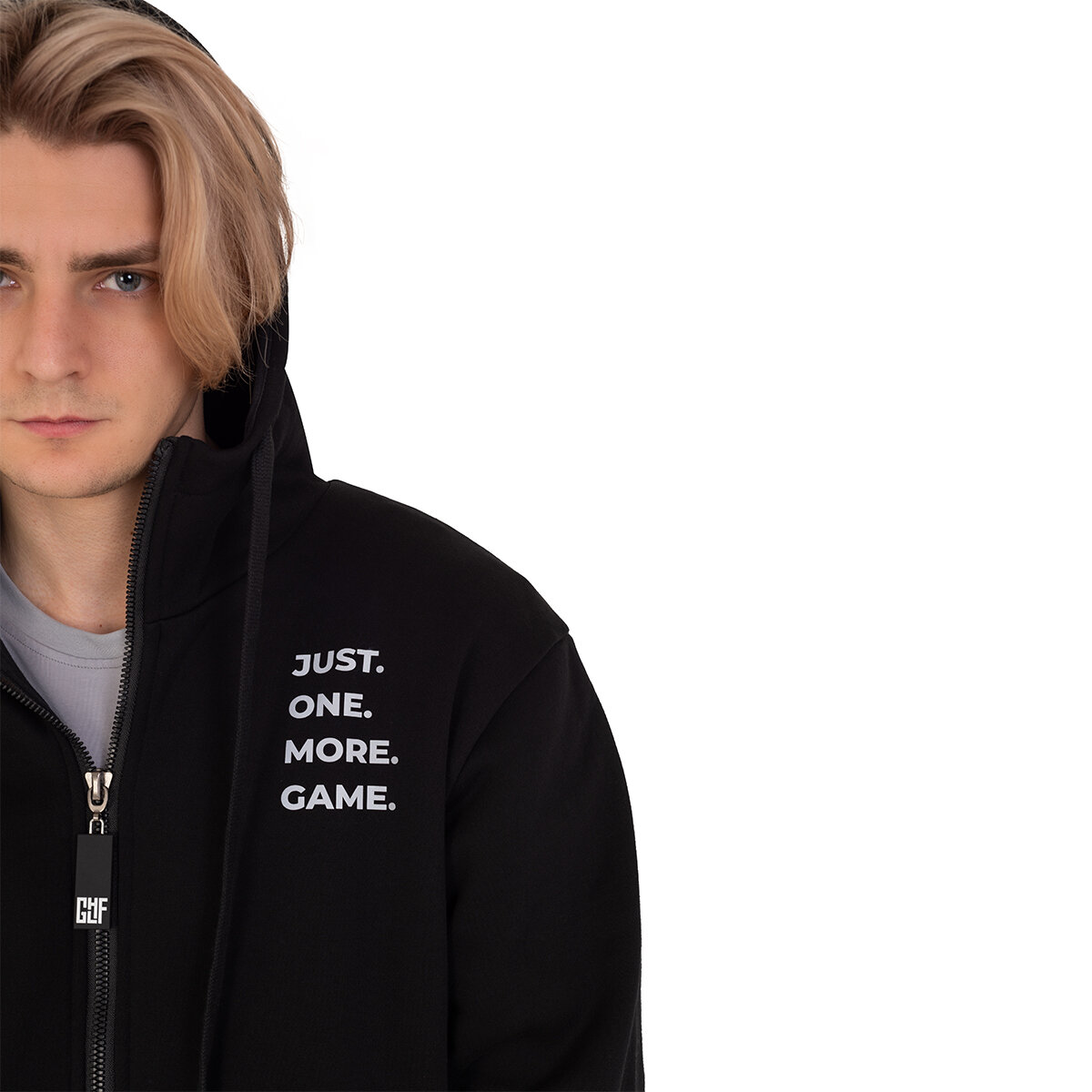 Худи GLHF на молнии с уютным капюшоном и вместительными карманами - идеальное решение в прохладный день. Худи выполнено из смесовой ткани высочайшего качества. Изнаночная сторона худи и капюшона дополнена слоем из хлопка, который не позволит основному материалу скатываться и оставлять следы на другой одежде и теле. На груди худи расположена знакомая всем геймерам фраза "JUST ONE MORE GAME" со светоотражающим эффектом, которая точно не оставит равнодушным любителя компьютерных игр. На кармане нашита жаккардовая бирка, шнур капюшона дополнен прорезиненными фирменными наконечниками.