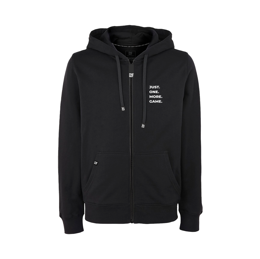 Худи GLHF на молнии с уютным капюшоном и вместительными карманами - идеальное решение в прохладный день. Худи выполнено из смесовой ткани высочайшего качества. Изнаночная сторона худи и капюшона дополнена слоем из хлопка, который не позволит основному материалу скатываться и оставлять следы на другой одежде и теле. На груди худи расположена знакомая всем геймерам фраза "JUST ONE MORE GAME" со светоотражающим эффектом, которая точно не оставит равнодушным любителя компьютерных игр. На кармане нашита жаккардовая бирка, шнур капюшона дополнен прорезиненными фирменными наконечниками.