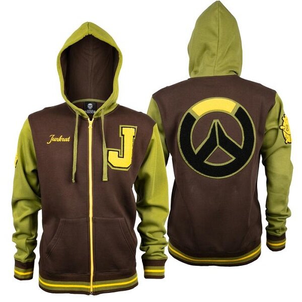 Тренируйте своих конкурентов с худи Overwatch Varsity Zip-Up. На этой коричнево-зеленой толстовке с капюшоном вышито имя Крысавчика на правой груди и три нашивки из синели - его буква «J» на левой груди, логотип Overwatch на спине и значок таланта Total Mayham на правом рукаве. Присоединяйтесь к команде и покажите свою поддержку Крысавчику.