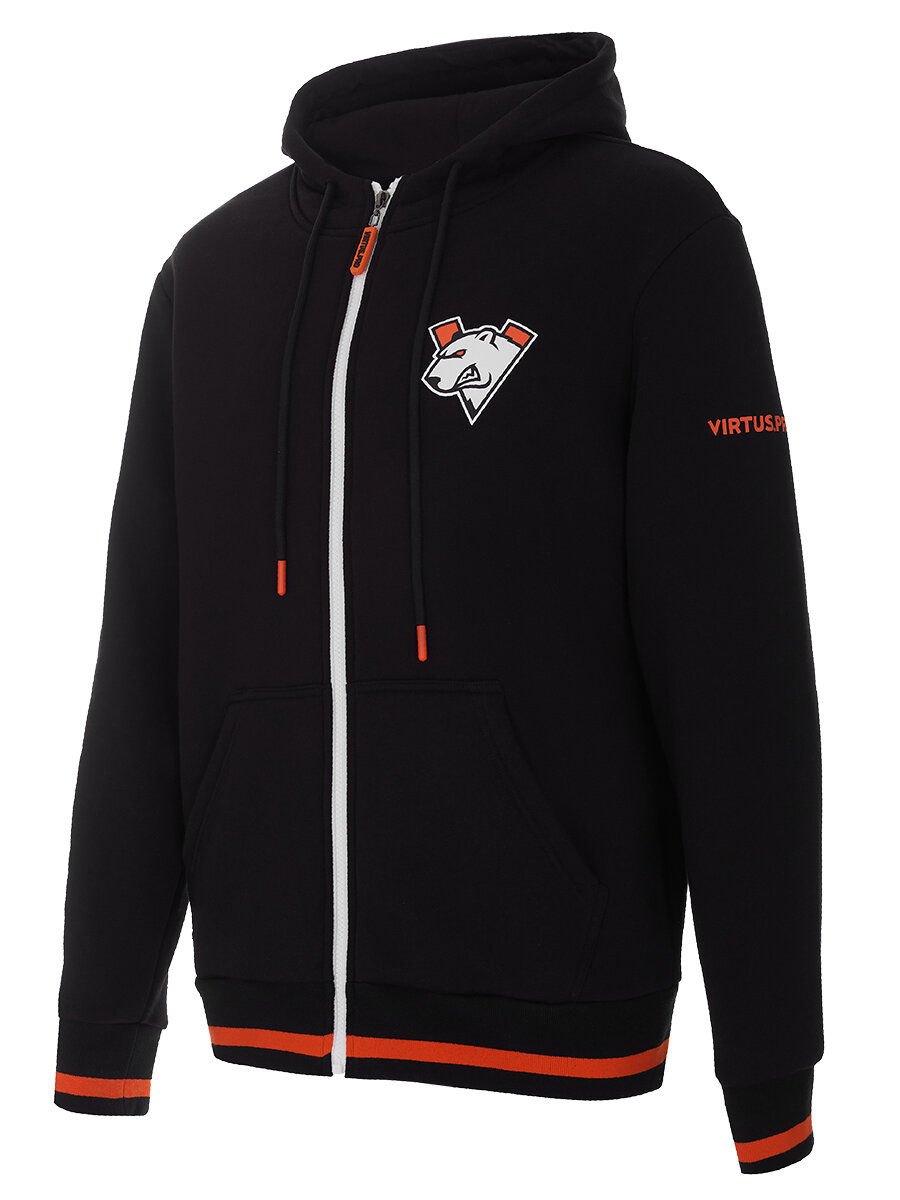 Худи на молнии Virtus.pro глубокого черного цвета станет незаменимой частью вашего ежедневного гардероба. Контрастные резинки на рукавах и талии подчеркивают современный дизайн. Принт логотипа киберспортивной команды расскажет о ваших увлечениях. Очень удобно в носке и не стесняет движения, дарит комфорт в любое время года. Отличный выбор для тех, кто увлекается киберспортом.