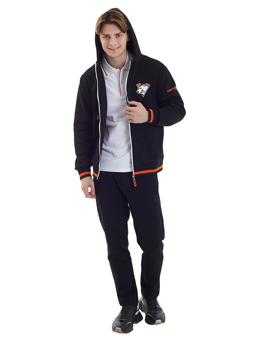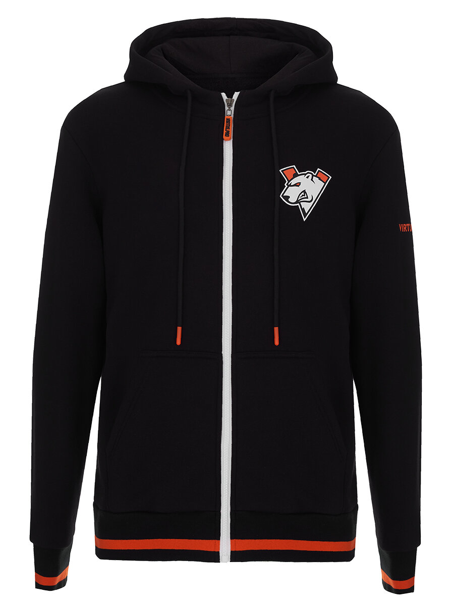Худи на молнии Virtus.pro глубокого черного цвета станет незаменимой частью вашего ежедневного гардероба. Контрастные резинки на рукавах и талии подчеркивают современный дизайн. Принт логотипа киберспортивной команды расскажет о ваших увлечениях. Очень удобно в носке и не стесняет движения, дарит комфорт в любое время года. Отличный выбор для тех, кто увлекается киберспортом.