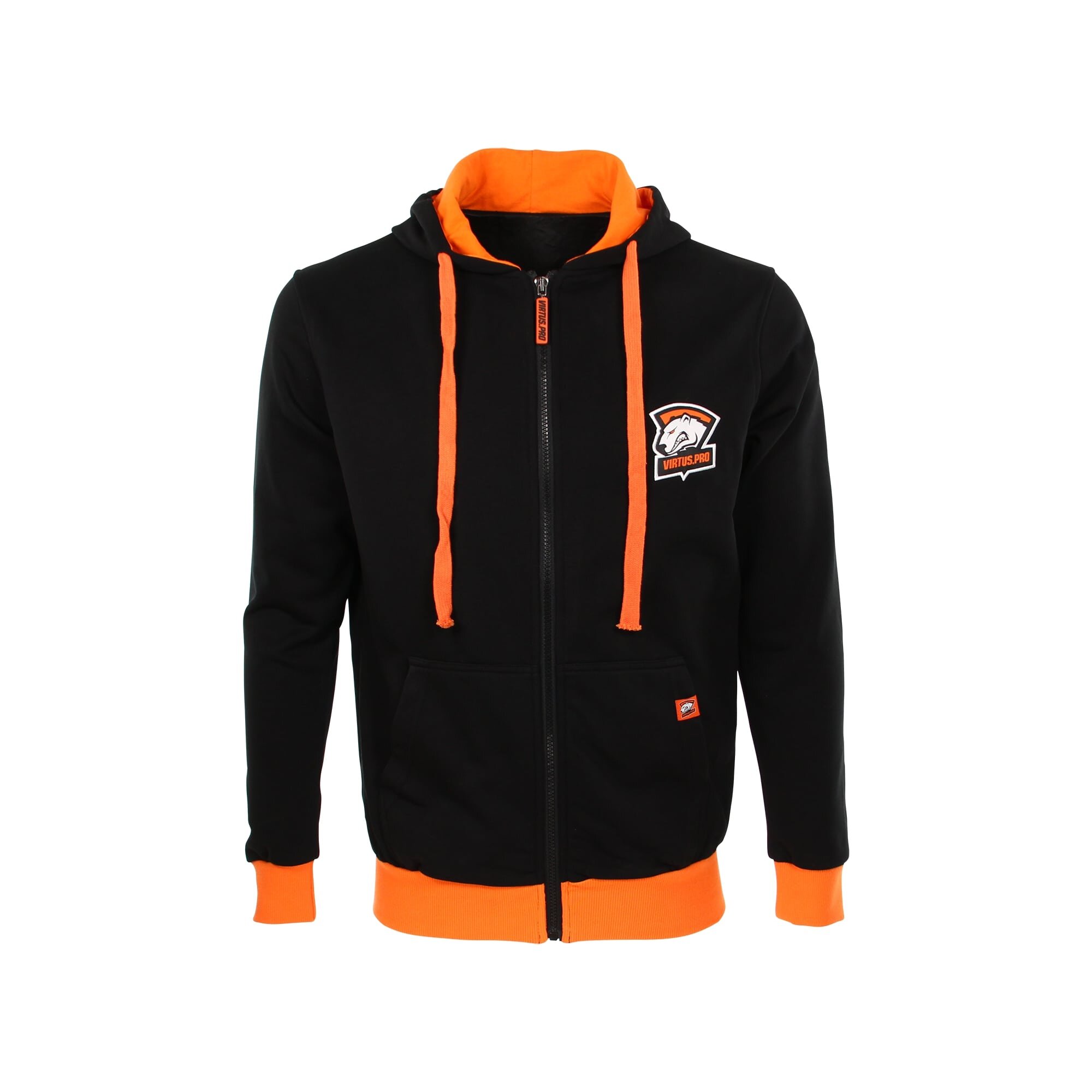 Худи на молнии Virtus.pro Team - теплое и комфортное, спасет вас от ветра и не даст замерзнуть в прохладную погоду. Модель сшита из комфортной хлопковой ткани с добавлением полиэстера, что придает ей невероятную прочность и практичность. Строгий черный цвет худи разбавлен оранжевыми манжетами, подолом и украшен логотипом киберспортивной команды. Очень удобно в носке и не стесняет движения, в ней комфортно в любое время года. Каждая деталь вещи тщательно продумана и реализована. Модель подчеркнет ваш безупречный вкус и расскажет окружающим людям о вашем увлечении. Худи на молнии Virtus.pro Team идеально подойдет для активного образа жизни.