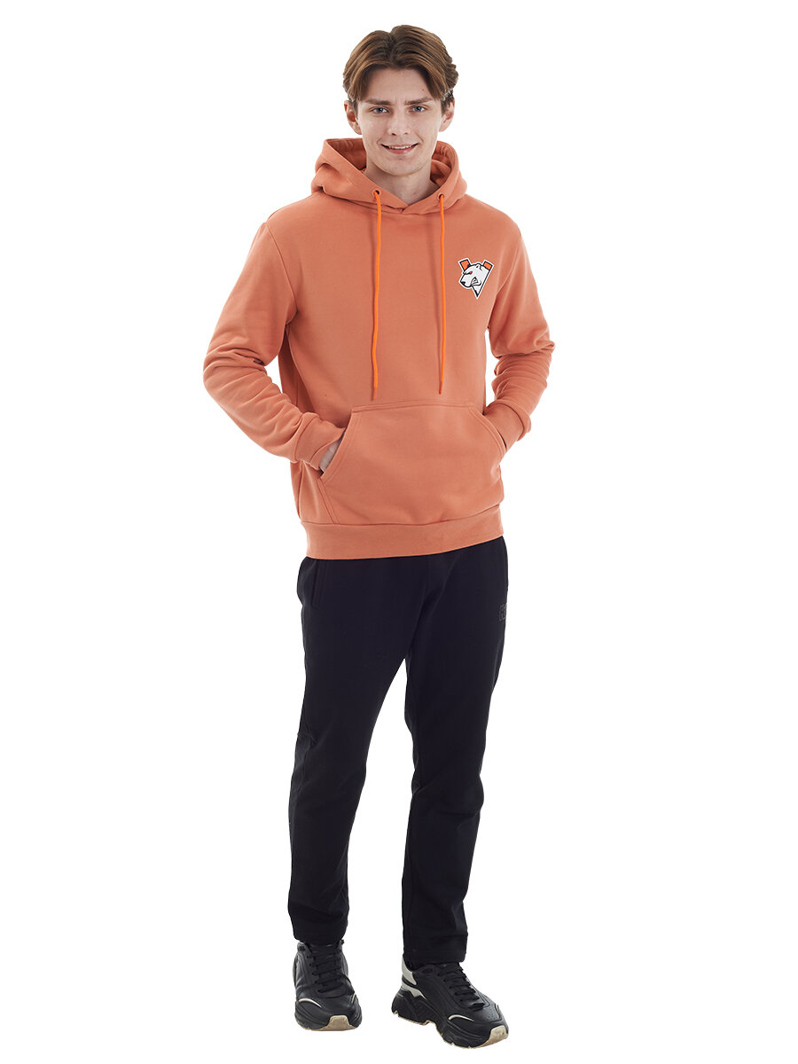 Худи свободного прямого кроя со спущенной линией плеча, уютным капюшоном и вместительным карманом - идеальное решение в прохладный день. Худи выполнено из смесовой ткани высочайшего качества. На кармане-кенгуру расположен логотип киберспортивной команды, шнур капюшона также украшен принтом лого.