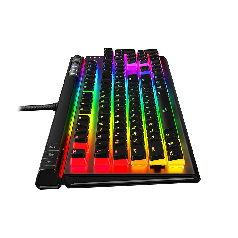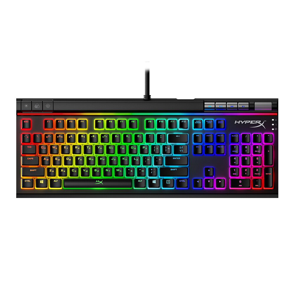 Клавиатура HyperX Alloy Elite 2 Red Switch отлично подходит для тех, кому нужно удобное и точное управление, — геймерам, стримерам и всем, кто выполняет несколько задач одновременно. Эта полнофункциональная игровая клавиатура с выделенными мультимедийными клавишами и большим колесиком регулировки громкости готова к любой задаче: от редактирования видео до просмотра фильмов. Она оснащена сверхнадежными механическими переключателями HyperX, сбалансированными по скорости и быстродействию, которые обеспечивают точность нажатия клавиш. Открытые светодиоды переключателей в сочетании с полупрозрачными двухкомпонентными клавишными колпачками HyperX придают RGB-подсветке дополнительную яркость по сравнению с однотонными колпачками.