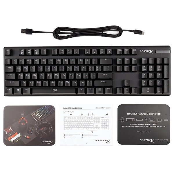 HyperX Alloy Origins — это компактная и прочная клавиатура с персонализированными механическими переключателями HyperX, разработанная в целях обеспечения для геймеров наилучшего сочетания стиля, производительности и надежности. Эти клавишные переключатели оснащены открытыми светодиодами, обеспечивающими потрясающую подсветку, с усилием срабатывания и расстоянием хода, элегантно сбалансированными для обеспечения скорости реагирования и точности. Клавиатура Alloy Origins сконструирована с цельным алюминиевым корпусом, поэтому она остается прочной и устойчивой при стремительном потоке нажатий клавиш, а также оснащена подставочным основанием, позволяющим выбрать один из трех различных уровней наклона. Её изящная и компактная конструкция освобождает пространство для движений мыши, а также она оснащена съемным USB-кабелем типа C для обеспечения максимальной портативности.