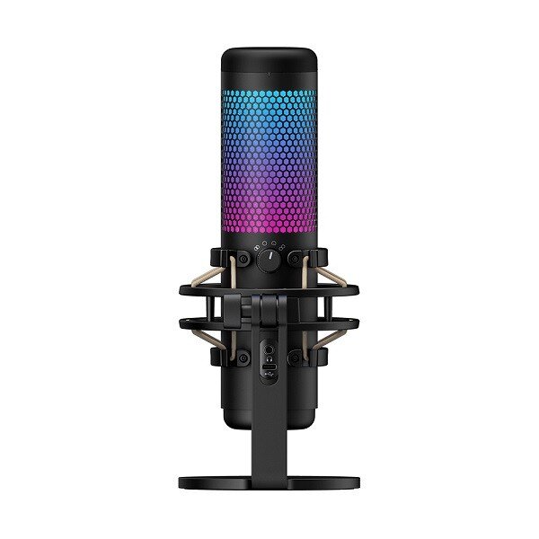 HyperX QuadCast S — полнофункциональный автономный микрофон, который идеально подходит для начинающих стримеров или подкастеров, которым необходим конденсаторный микрофон с высоким качеством звука. Микрофон QuadCast оснащен собственным амортизирующим подвесом, который помогает снизить шум окружающей среды, и встроенным поп-фильтром, с помощью которого можно приглушить надоедливые взрывные звуки. Проверьте состояние своего микрофона с помощью светодиодного индикатора или отключите звук во избежание возможных проблем во время трансляций. Благодаря четырем полярным диаграммам направленности этот микрофон подготовлен практически к любой ситуации записи, а также имеет удобно расположенный шкалу регулировки усиления для быстрой настройки чувствительности входа микрофона. Входящий в комплект монтажный адаптер подходит для 3/8- и 5/8-дюймовых резьбовых разъемов и совместим с большинством подставок. Модель QuadCast S обеспечивает RGB-подсветку и динамические эффекты, которые можно настроить с помощью ПО HyperX NGENUITY.