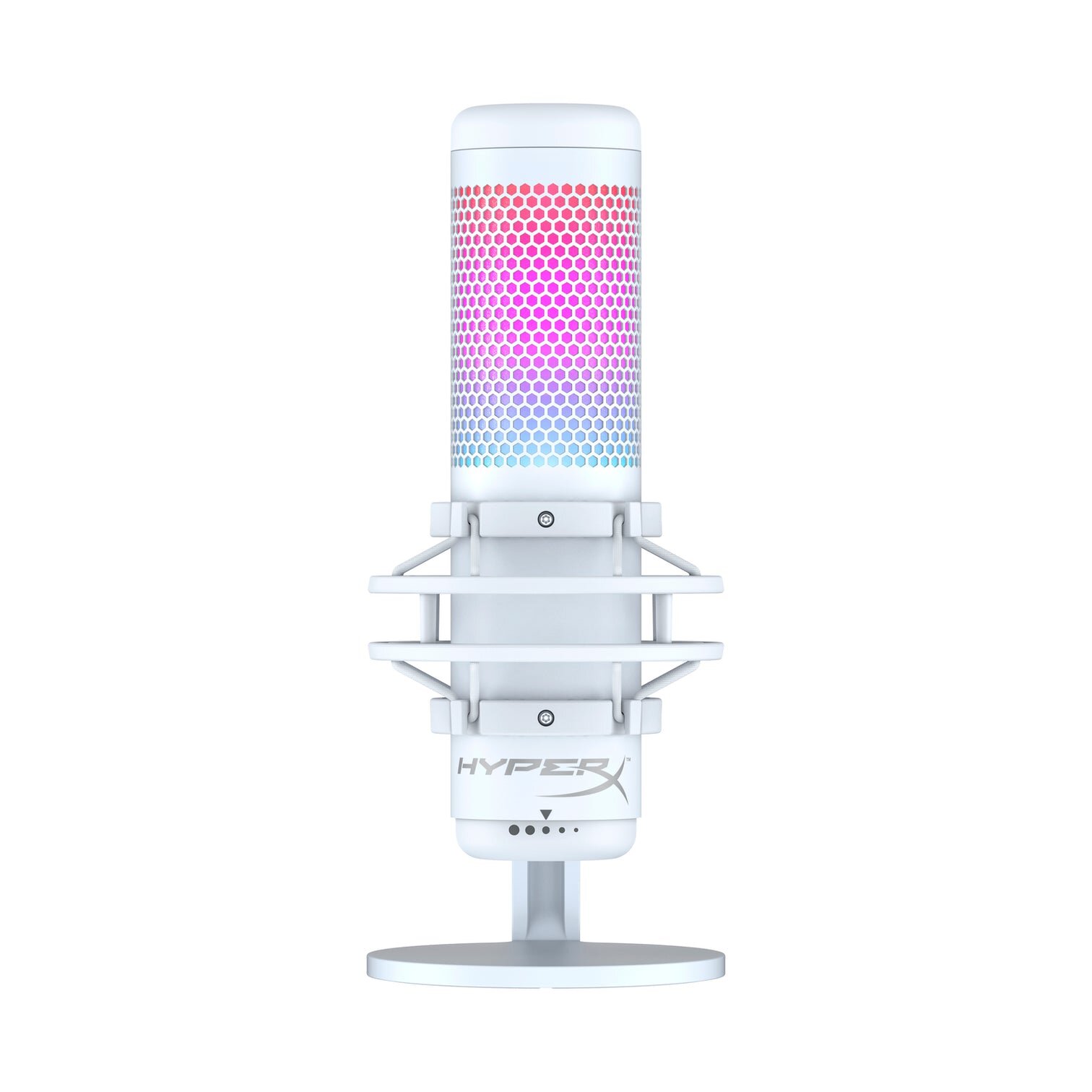 HyperX QuadCast S — полнофункциональный автономный микрофон, который идеально подходит для начинающих стримеров или подкастеров, которым необходим конденсаторный микрофон с высоким качеством звука. Микрофон QuadCast оснащен собственным амортизирующим подвесом, который помогает снизить шум окружающей среды, и встроенным поп-фильтром, с помощью которого можно приглушить надоедливые взрывные звуки. Проверьте состояние своего микрофона с помощью светодиодного индикатора или отключите звук во избежание возможных проблем во время трансляций. Благодаря четырем полярным диаграммам направленности этот микрофон подготовлен практически к любой ситуации записи, а также имеет удобно расположенный шкалу регулировки усиления для быстрой настройки чувствительности входа микрофона. Входящий в комплект монтажный адаптер подходит для 3/8- и 5/8-дюймовых резьбовых разъемов и совместим с большинством подставок. Модель QuadCast S обеспечивает RGB-подсветку и динамические эффекты, которые можно настроить с помощью ПО HyperX NGENUITY.