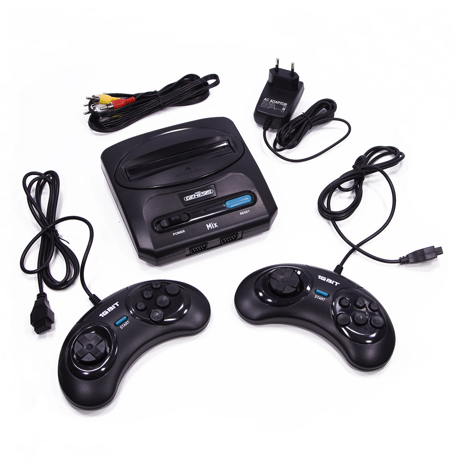Игровая приставка Retro Genesis Mix с поддержкой сразу двух платформ – 8 и 16 бит – позволяет играть в игры типа NES (Dendy) и Sega. Встроенные 470 игр, из которых 300 игр 8 бит и 170 игр 16 бит, предлагают широкий спектр развлечений, в числе которых увлекательные игры про Марио, Танчики и Соника. Приставка оснащается классическим AV-разъемом. В комплект с приставкой идут два проводных джойстика в привычной форме геймпадов Sega с шестью кнопками действия.