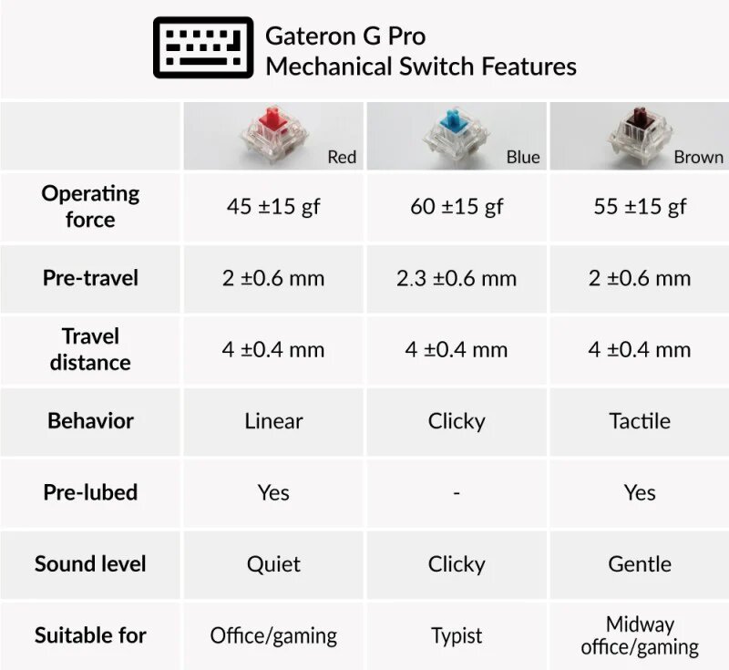 Срок службы переключателей Gateron G Pro составляет 50 миллионов нажатий, а отклик будет ощущаться одинаково при каждом нажатии, независимо от времени использования.