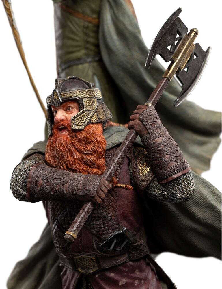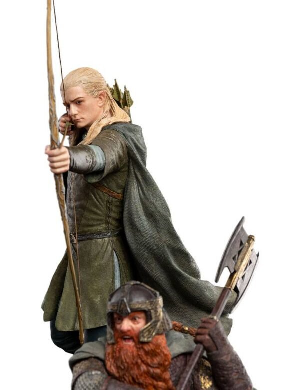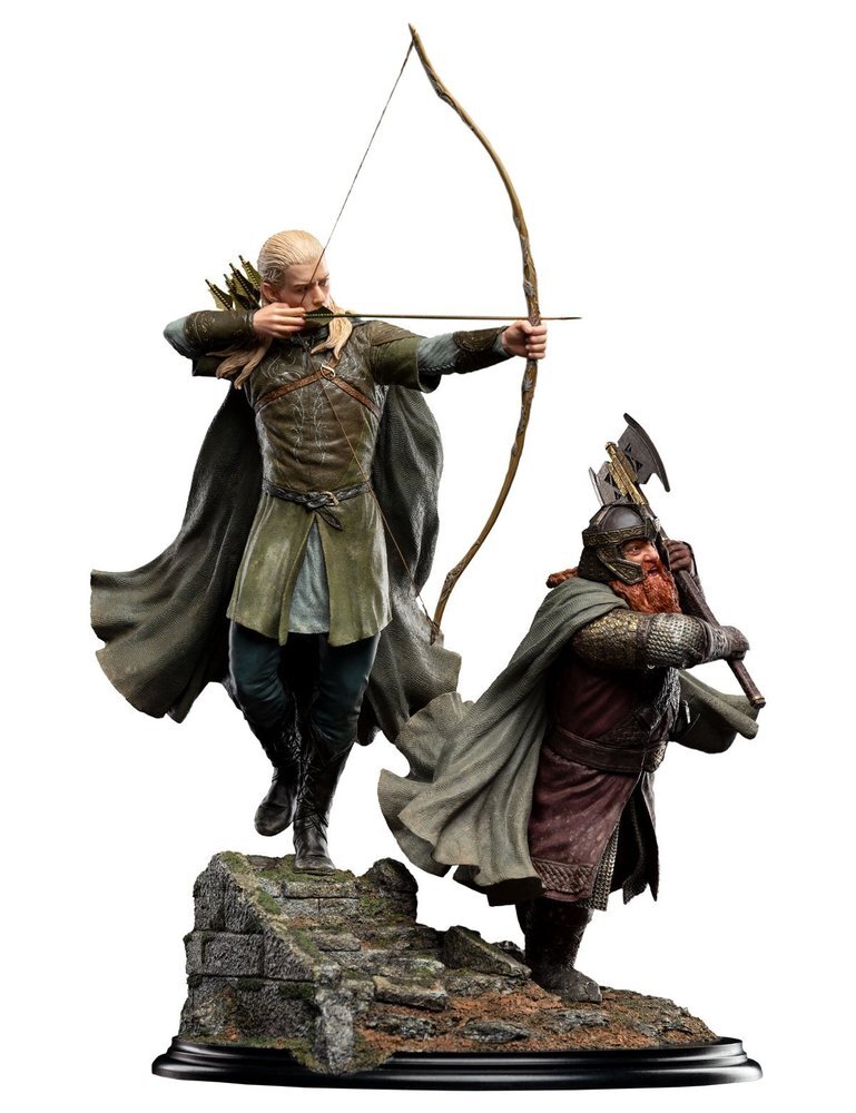 Испытания и лишения на долгом пути к Мордору смягчили неприязнь этих двух персонажей "Властелина Колец", а битва на горе Амон Хэн положила начало прочной знаменитой дружбы. Защищая хоббитов от орков, Арагорн, а затем и Гимли с Леголасом вступили в бой. Абсолютно разные боевые стили гнома и эльфа отлично дополняли друг друга, пока они пробивали себе путь через толпу урук-хаев. Именно начало битвы запечатлила эта потрясающая статуэтка от Weta Workshop, созданная к 20-й годовщине экранизации трилогии "Властелина Колец".