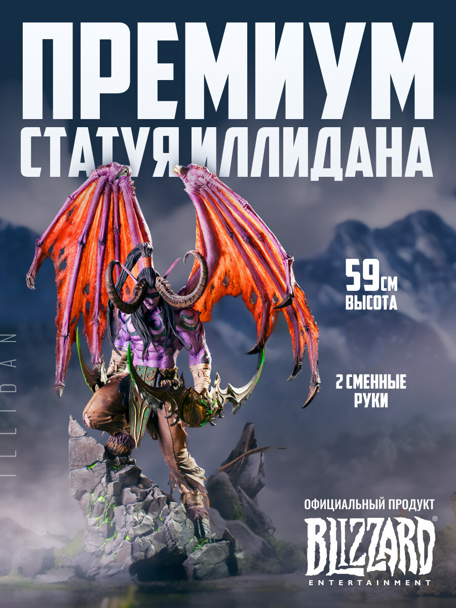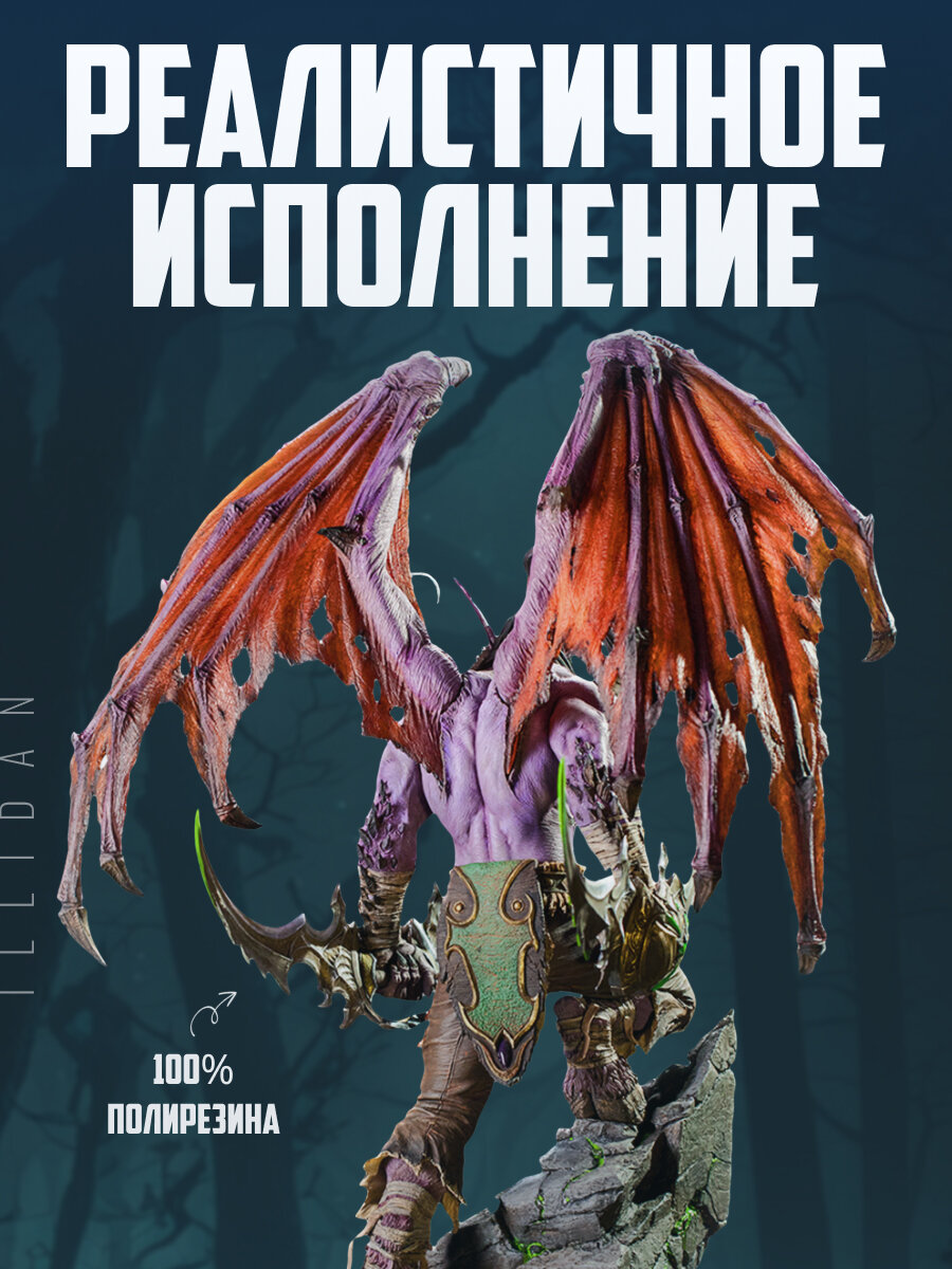 Эта красочная скульптура высотой 61 см.Illidan –один из основных персонажей вымышленной вселенной Warcraft. Великий чародей и воин, Иллидан родился ночным эльфом. В игре Иллидан использует тайную магию – демоническую силу, сжигая тела и души своих врагов. В качестве оружия использует парные клинки. Глаза Иллидана сожгли изумрудным пламенем, что подарило ему магическое зрение, от которого не могут укрыться ни демоны, ни нежить. Благодарятщательной прорисовке мельчайших деталей статуэтка выглядит весьма реалистично и узнаваемо, а также имеет возможность принимать практически любую позу. Все фигурки этой серии выпускаются ограниченным тиражом. Обладает дополнительными элементами: кистями рук, два меча, а также регулируемая по высоте подставка- держатель. Послужит отличным подарком для игрока или прекрасным дополнением коллекции World of Warcraft.