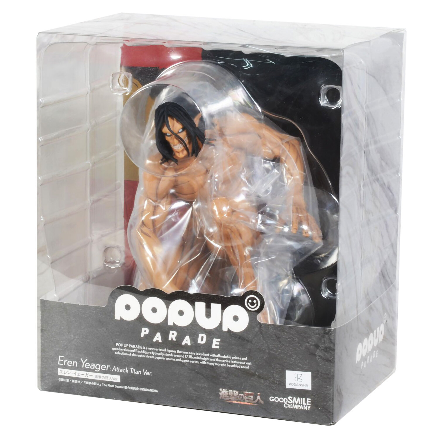 Фигурка из серии POP UP PARADE выполнена по мотивам аниме и манги "Атака титанов" (Attack on Titan / Shingeki no Kyojin) и изображает главного героя Ерена Йегера в форме Атакующего Титана. Атакующий был воссоздан с максимальной реалистичностью и вниманием к деталям.