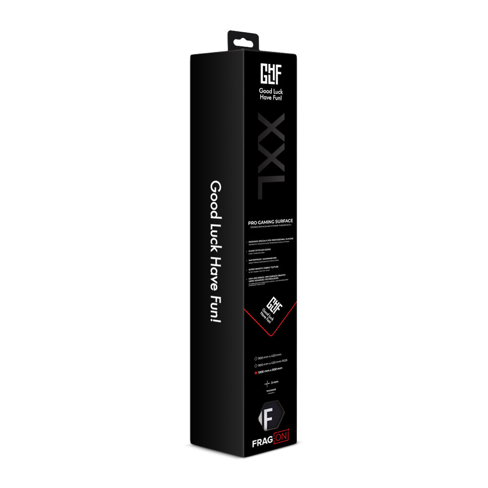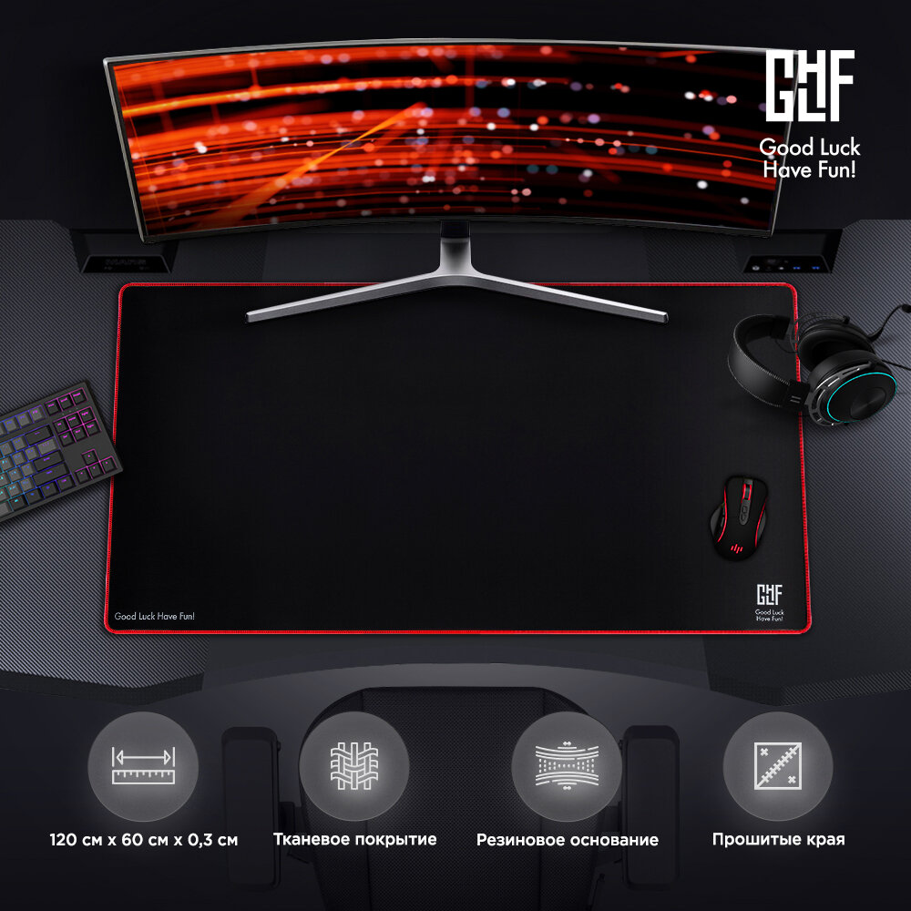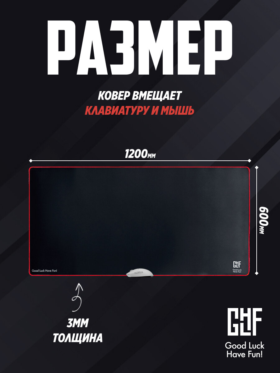 GLHF Black XXL имеет размер 120 см х 60 см х 0,3 см и сможет покрыть почти всю поверхность стола.