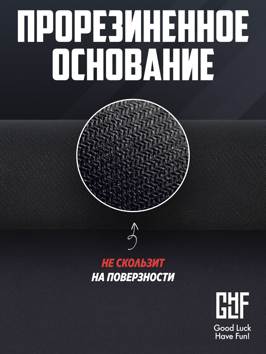 Игровой коврик GLHF Black — это новый уровень для игровых ковров с покрытием Speed. Гладкий материал Glass Fiber дает максимальный контроль над мышью, не вызывая неприятных ощущений от прикосновений.