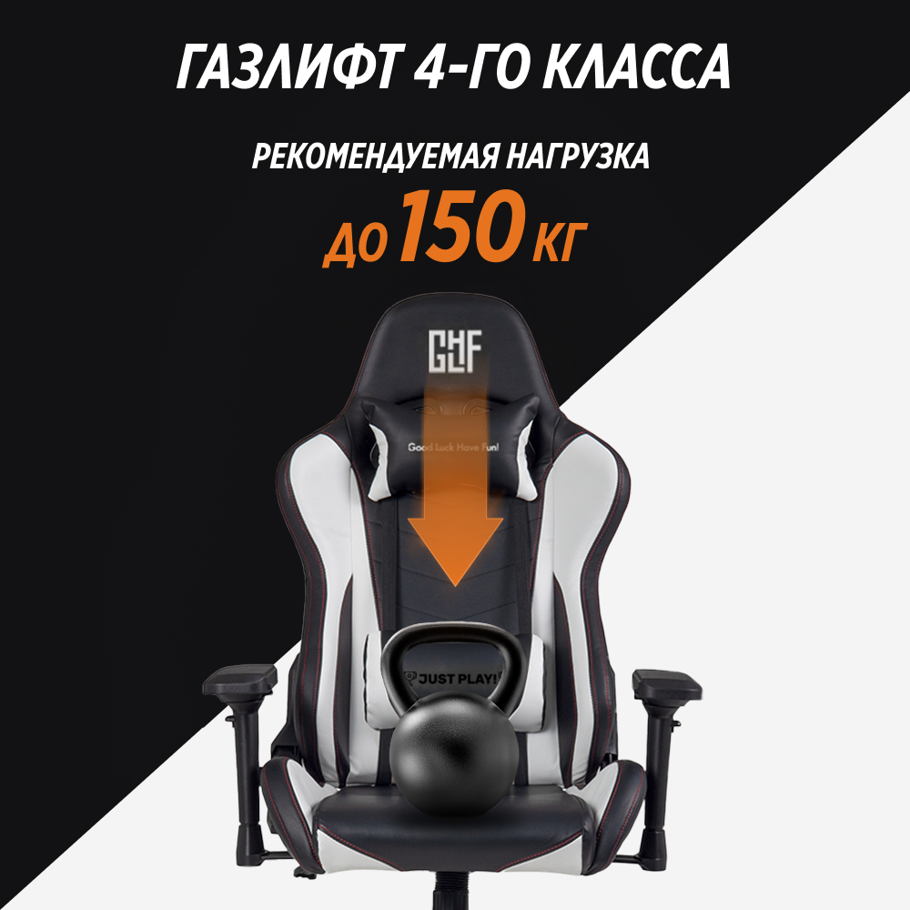 GLHF 5X создано для тех, кто хочет получить максимум от геймерского кресла. Оно сочетает в себе высокую эргономичность и комфорт, надёжные материалы и высокую прочность. Кресло оснащено 4D-подлокотниками, а благодаря газлифту 4-го класса максимальный вес достигает 150 кг, рекомендуемый - 130 кг.
