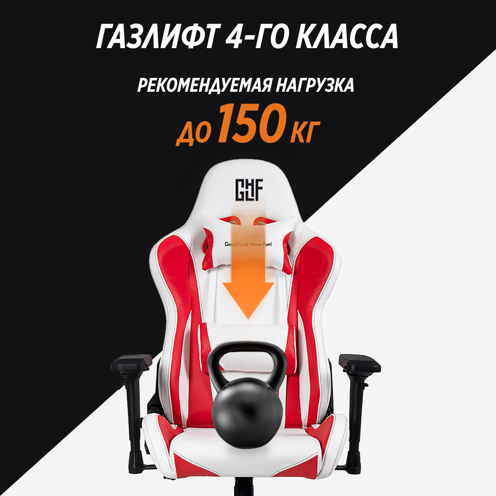 GLHF 5X создано для тех, кто хочет получить максимум от геймерского кресла. Оно сочетает в себе высокую эргономичность и комфорт, надёжные материалы и высокую прочность. Кресло оснащено 4D-подлокотниками, а благодаря газлифту 4-го класса максимальный вес достигает 150 кг, рекомендуемый - 130 кг.
