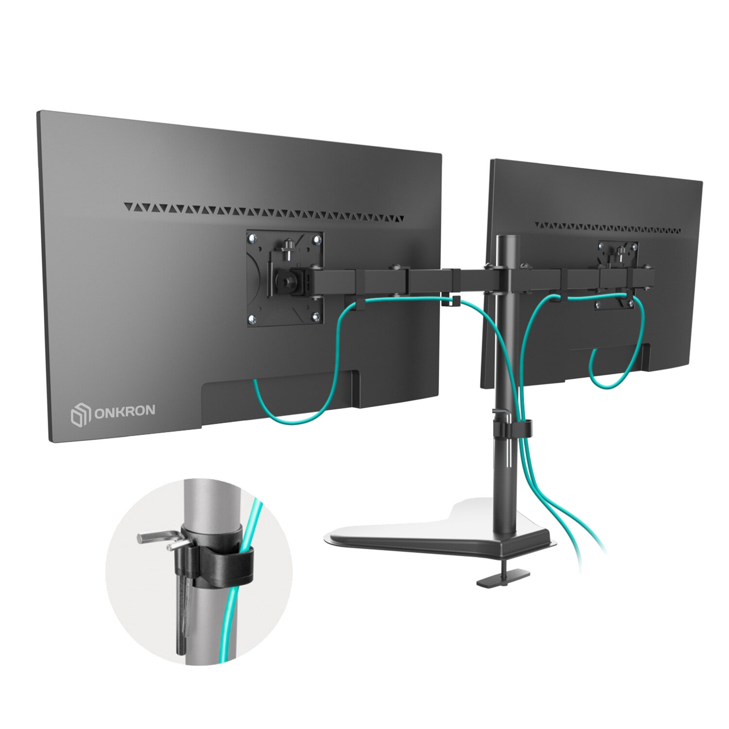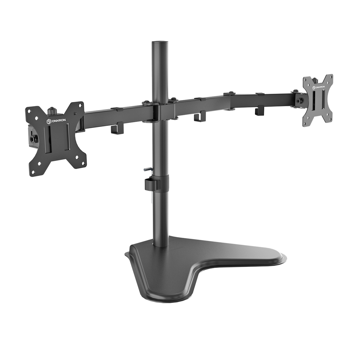 Настольный кронштейн ONKRON D221FS подойдёт для двух мониторов диагональю от 13 до 32 дюймов (33,02 – 81,28 см) и весом до 8 кг. С ним легко будет выбрать самое удобное положение для монитора, ведь его конструкция поддерживает портретную и альбомную ориентацию установки. Крепление выполнено из стали, что обеспечивает максимальную прочность и долговечность.