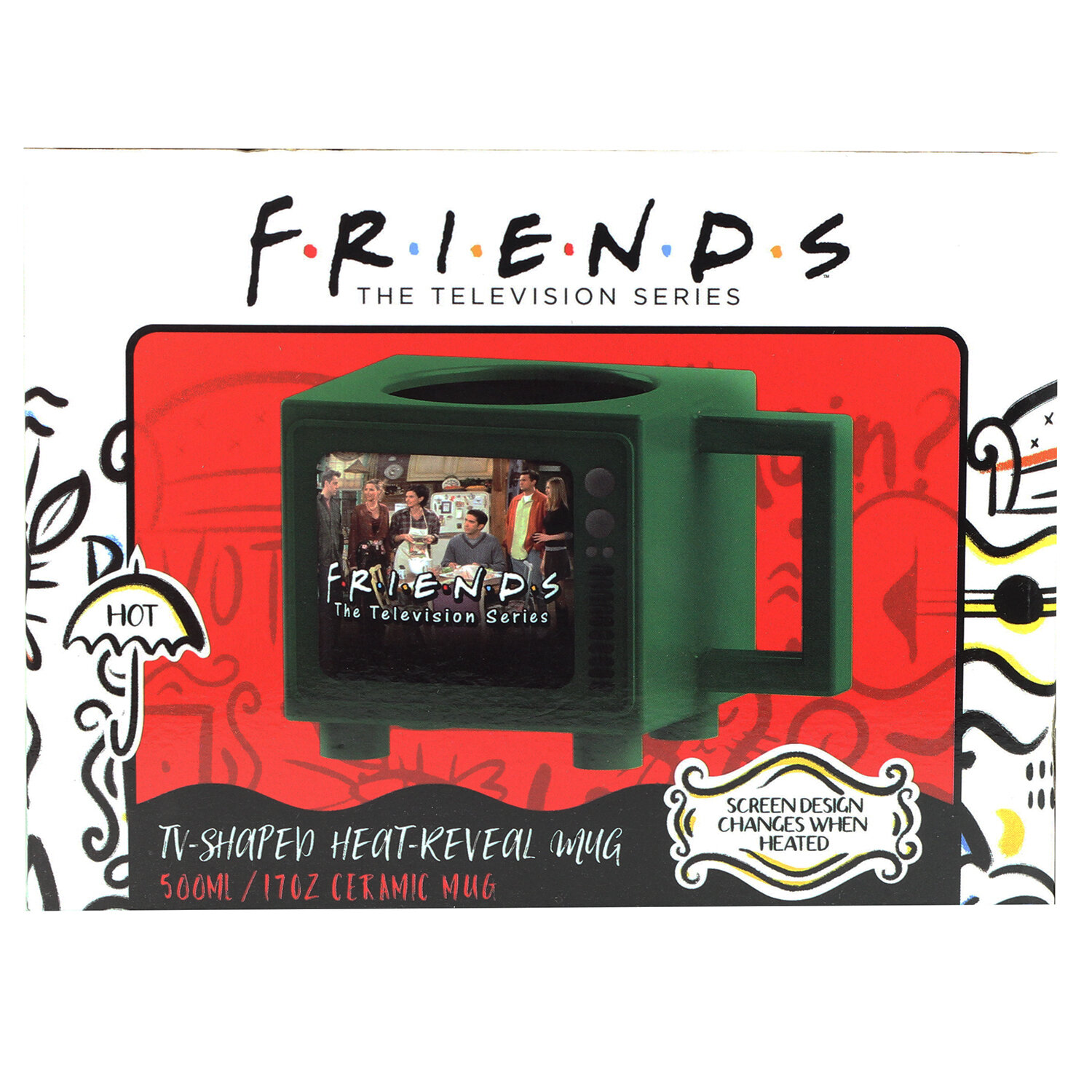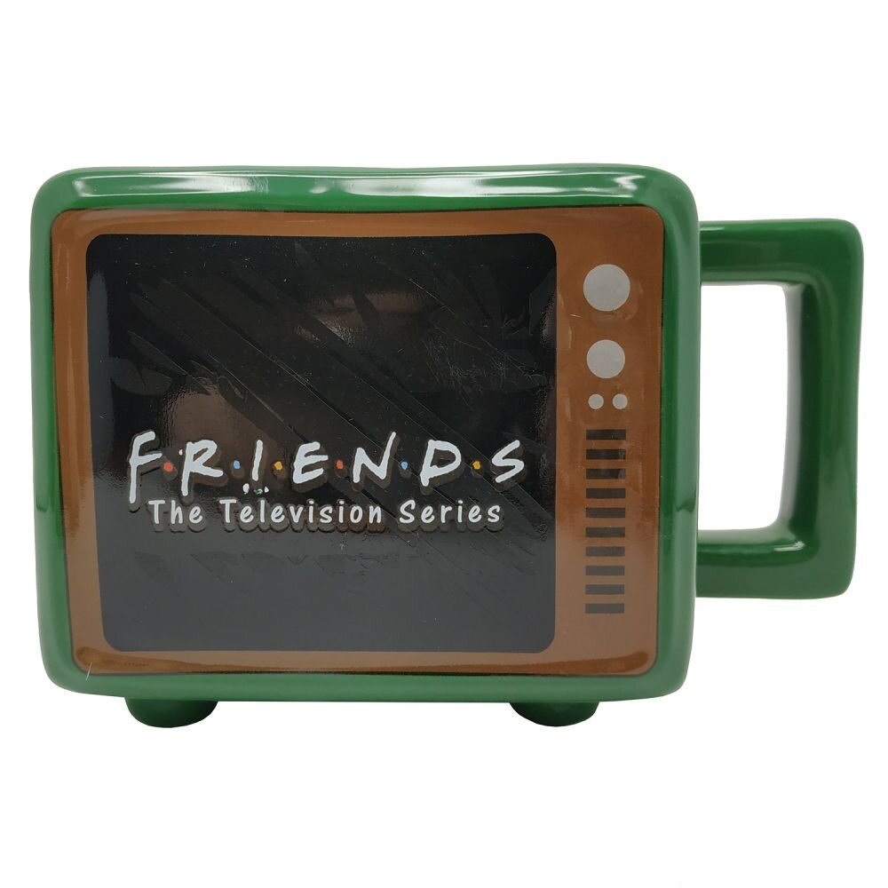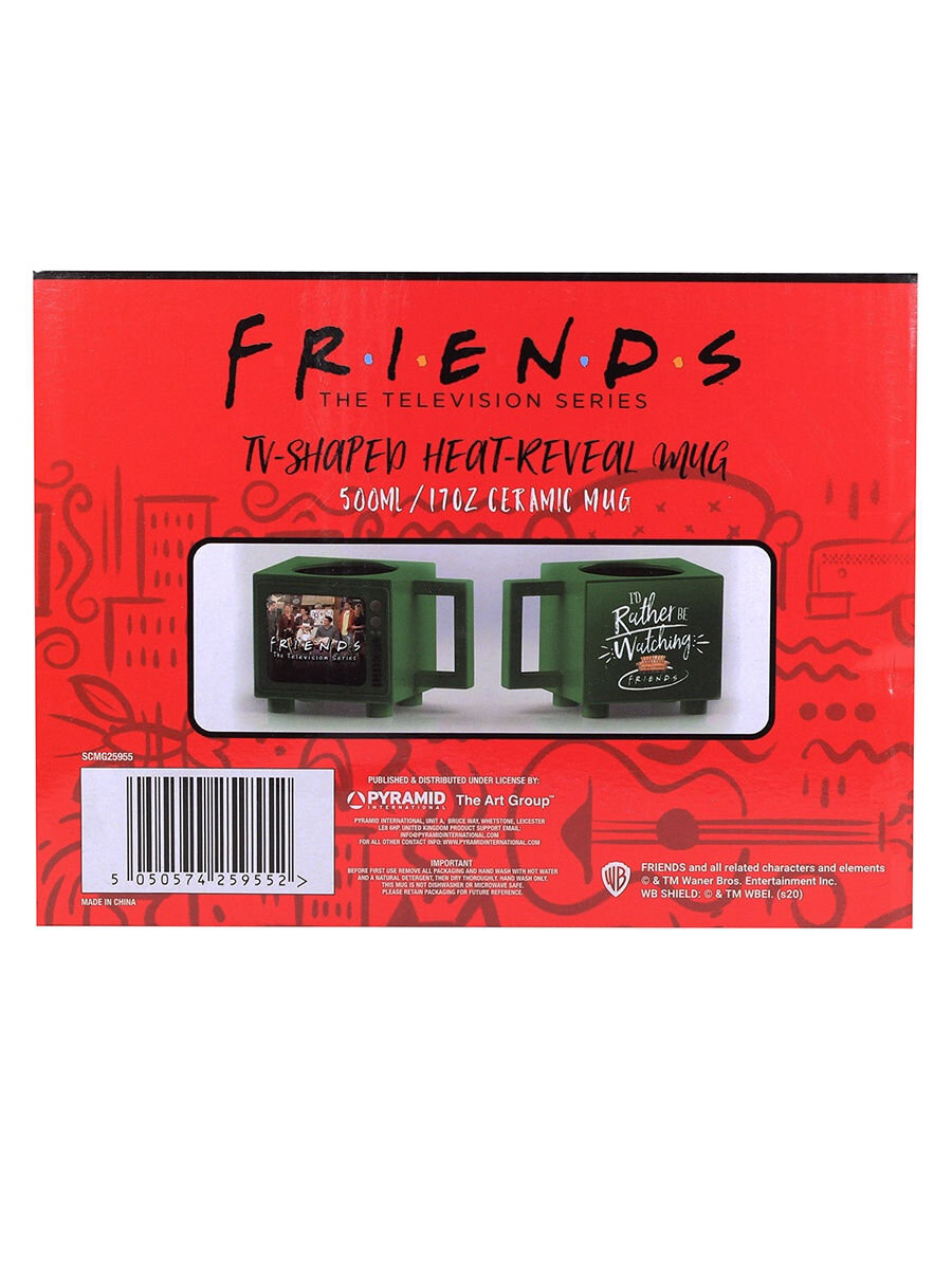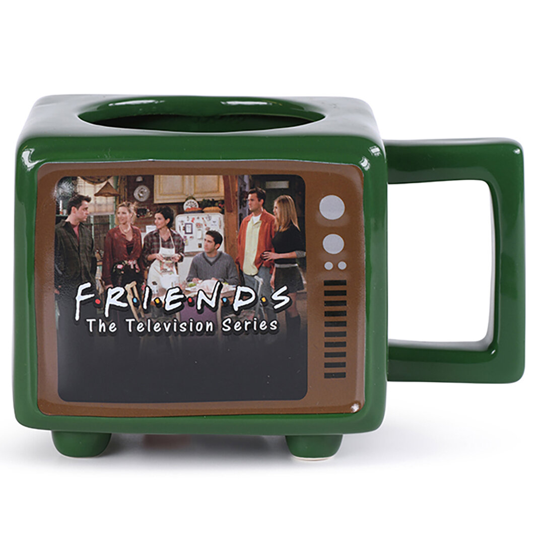 Часто с вами бывает такое, что посреди мероприятия или на работе вы осознаёте, что предпочли бы остаться дома с чашечкой горячего чая, кофе или какао и смотреть любимый ситком? Эта кружка полностью вас понимает! Сделанная по мотивам сериала "Друзья", кружка имеет форму телевизора и имеет рисунок, который проявляется при нагревании.