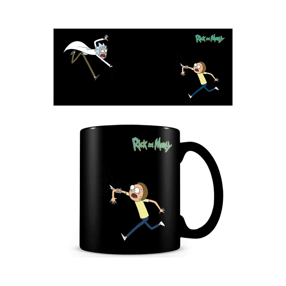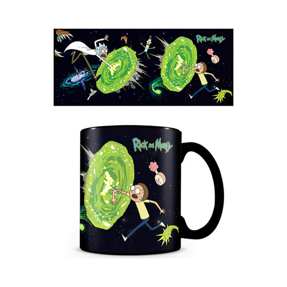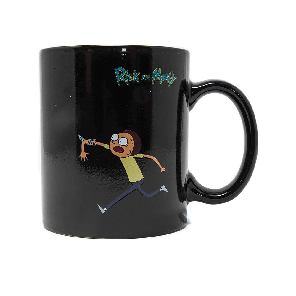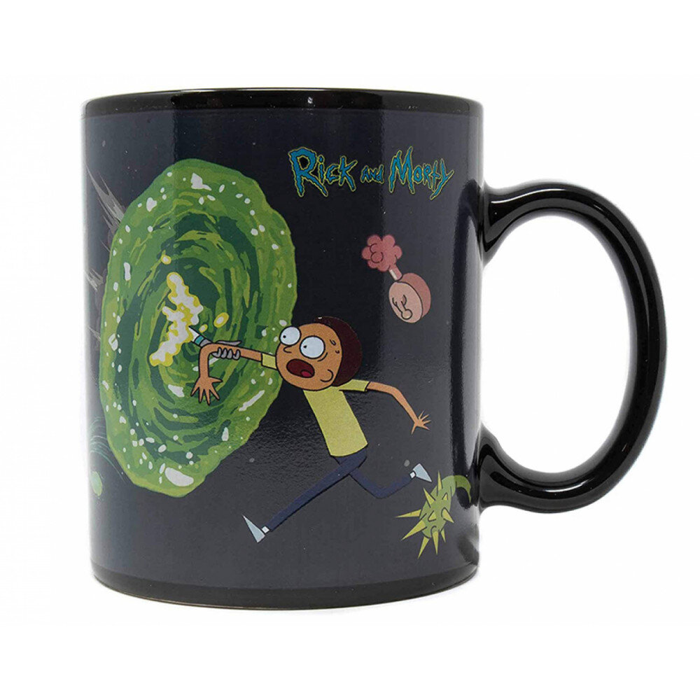 Эта кружка по мотивам мультсериала "Рик и Морти" реагирует на тепло изменением рисунка. Налейте в неё что-нибудь горячее и бегущие по чёрному фону главные герои окажутся затянутыми в портал и окружёнными опасными существами!