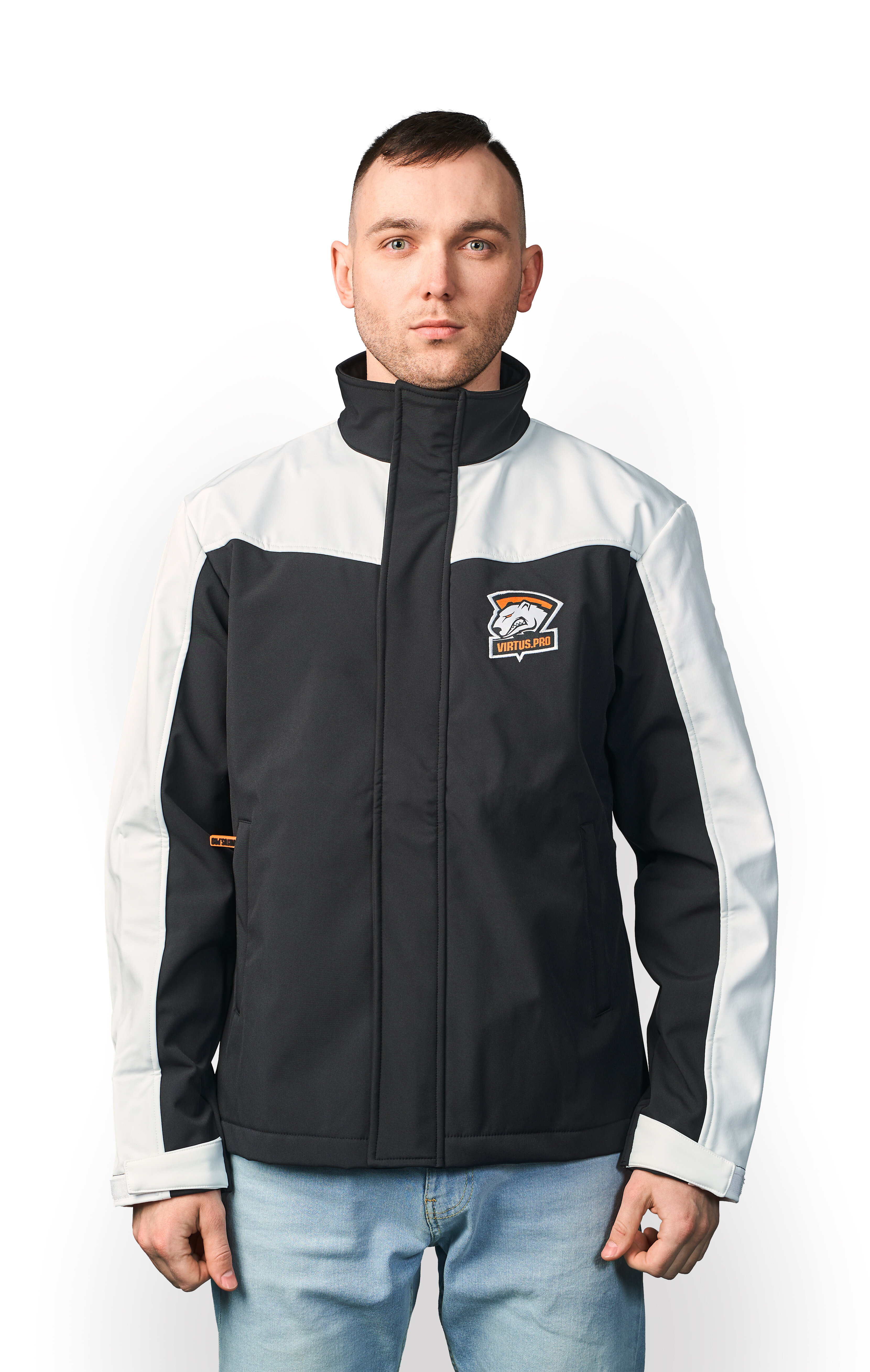 Куртка VIRTUS.PRO SoftShell - водонепроницаемая, теплая и комфортная куртка спасет вас от ветра, дождя и не даст замерзнуть в прохладную погоду. Выполнена из износостойкого полиэстера с мембраной SoftShell, с дышащими и водоотталкивающими свойствами. Модель VIRTUS.PRO застёгивается на молнию с ветрозащитной планкой, имеет высокий ворот, внешние карманы на молниях, небольшой внутренний карман. Строгий и лаконичный черный цвет разбавлен белыми вставками. В области груди расположен контрастный принт с логотипом киберспортивной команды. Куртка сшита из качественных и прочных материалов, способна перенести многократные стирки. Отличный выбор для тех, кто увлекается киберспортом.