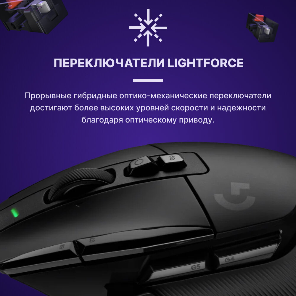 G502 X - это последнее дополнение к легендарной линейке G502. Переработанный дизайн позволил добиться впечатляющего снижения веса до 89 граммов. В мыши впервые применены гибридные оптико-механические переключатели LIGHTFORCE и субмикронный сенсор HERO 25K.