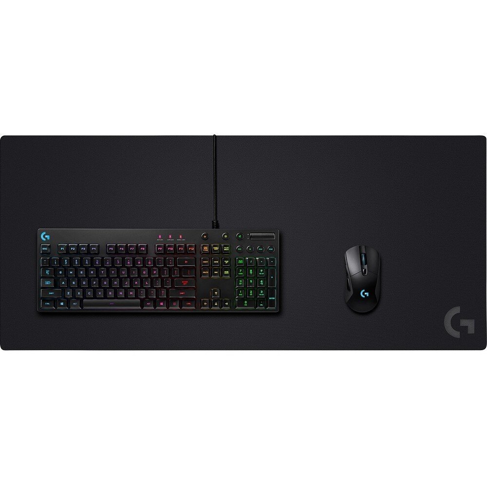 Logitech G840 XL большой удобный коврик охватывает всю поверхность рабочего стола, что позволяет полностью разместить на нем мышь и клавиатуру.