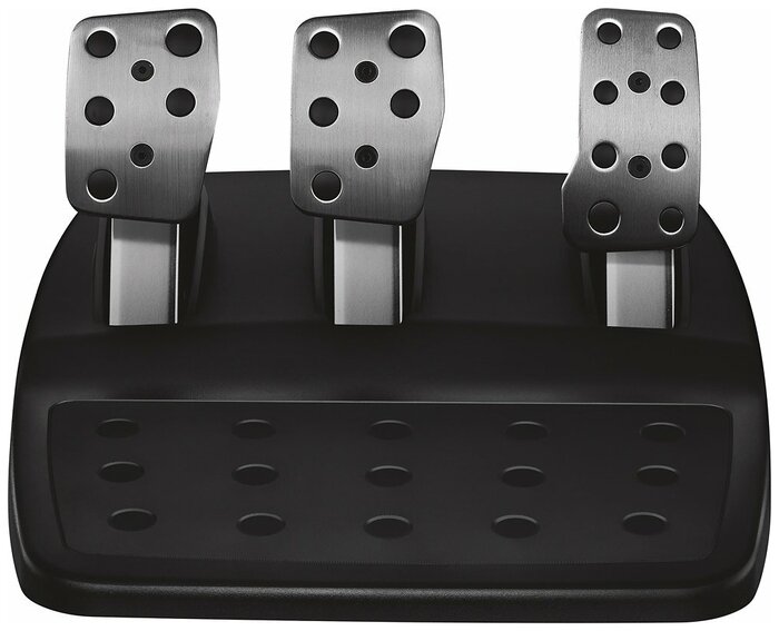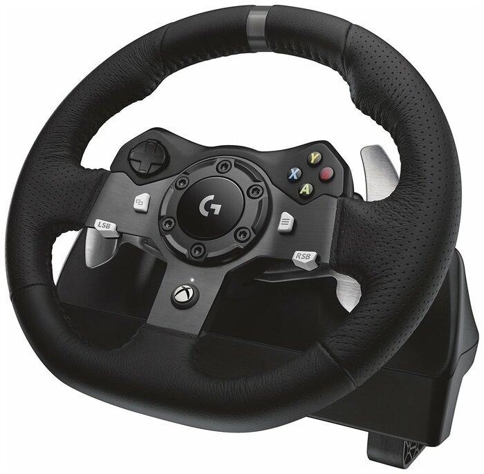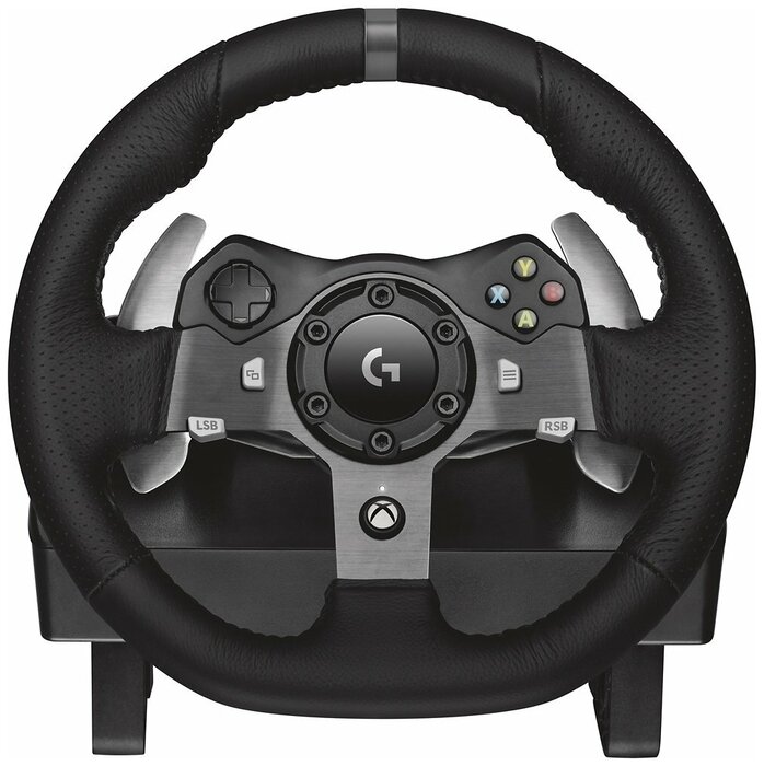 Руль LOGITECH G920 Driving Force позволяет получить максимально реалистичные ощущения от процесса вождения в компьютерной игре. Девайс оснащен сдвоенным электрическим двигателем с механизмом обратной связи, благодаря чему точно воспроизводится эффекты неровности дорожного покрытия и бокового удара. В комплект входят педали из нержавеющей стали. Они точно отражают усилия, которые требуется приложить, чтобы управлять автомобилем.