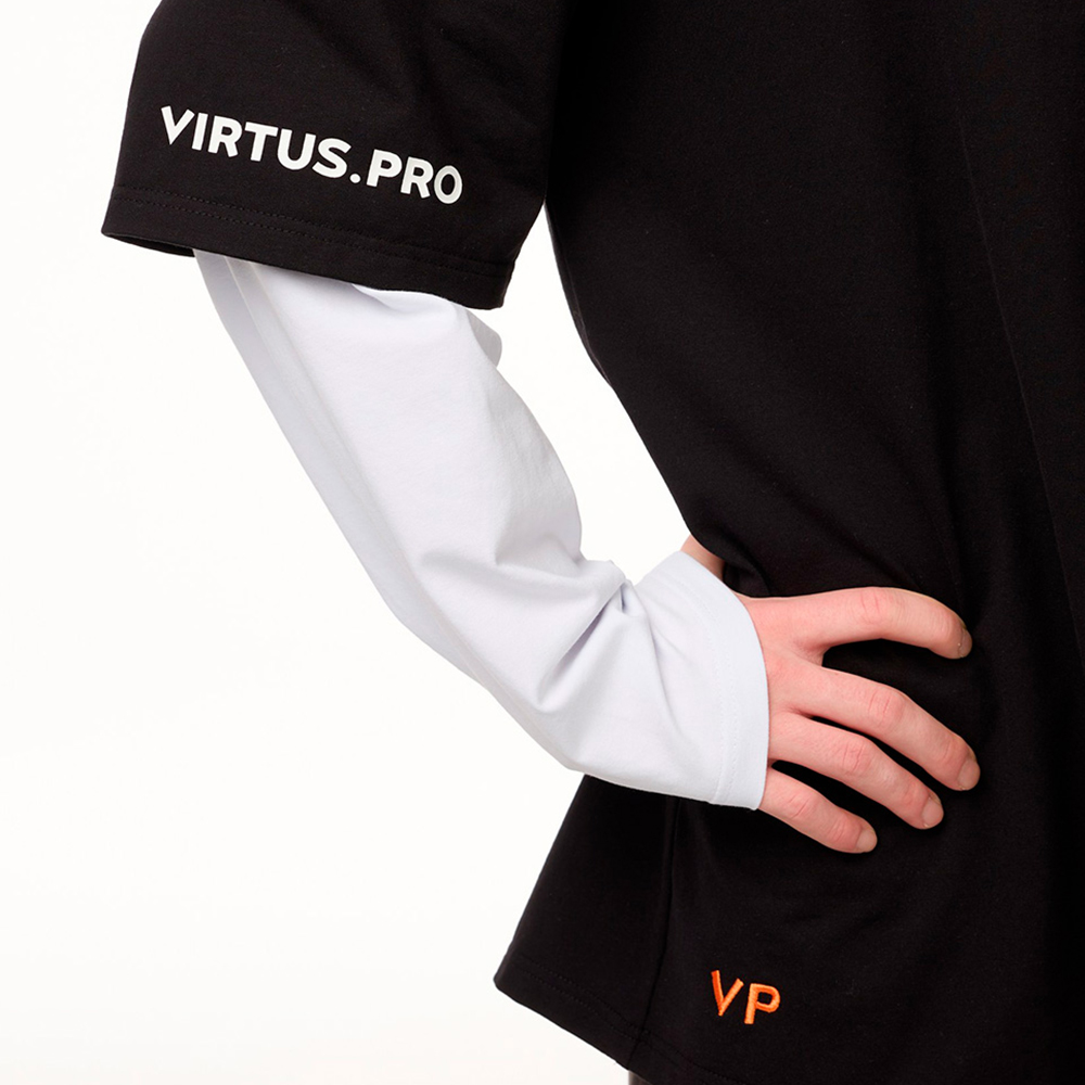 Будь то матч на арене или прогулка по городу — этот лонгслив из базовой коллекции Virtus.pro с белыми двойными рукавами станет стильным способом выразить свою страсть к киберспорту.