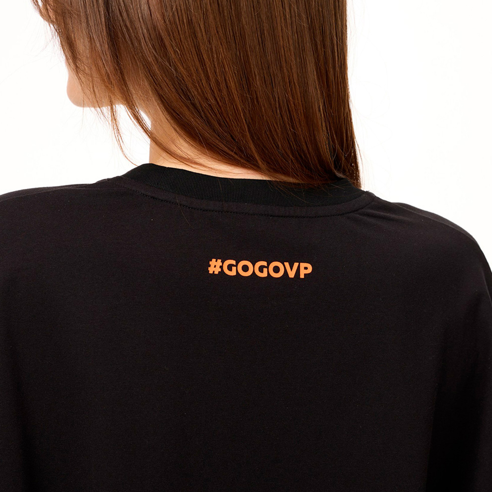 - Хэштег на спине: Маленький хэштег #GOGOVP также размещён на спине футболки, чтобы твой дух поддержки был виден с любого ракурса.