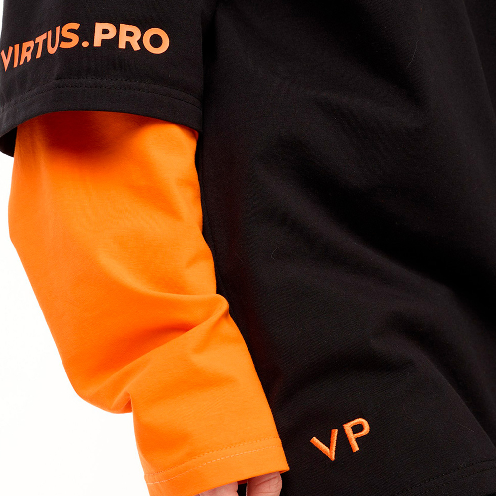 Будь то матч на арене или прогулка по городу — этот лонгслив из базовой коллекции Virtus.pro с оранжевыми двойными рукавами станет стильным способом выразить свою страсть к киберспорту.
