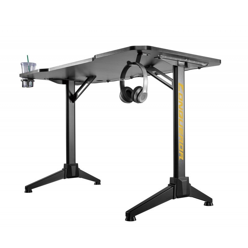 Стол оборудован крючком для наушников и подстаканником, чтобы всё нужное всегда было под рукой, но не загромождало игровой стол. Выравнивающиеся ножки обеспечат повышенную устойчивость даже на неровном полу.