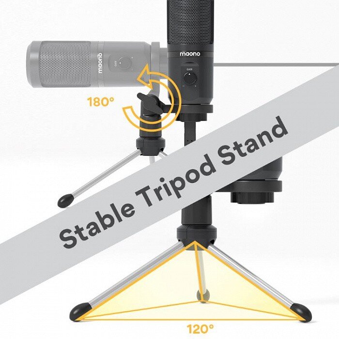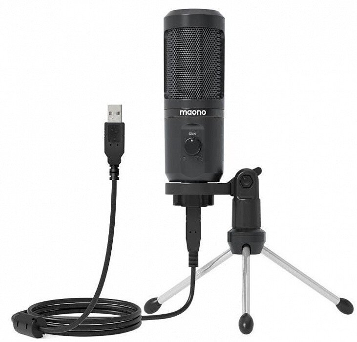 Maono AU-PM461TR – портативный микрофон для прямой передачи подкастов дома. AU-PM461TR - это USB-микрофон, который можно подключить к компьютеру для пения, подкастинга или записи. Это кардиоидная диаграмма направленности, поэтому звук лучше улавливается в шумной среде. Более того, рейтинг сэмплов довольно хорош, 192 кГц / 24 бит гарантируют, что ваш звук не будет искажен. Этот комплект микрофона можно брать с собой куда угодно благодаря легкому штативу.