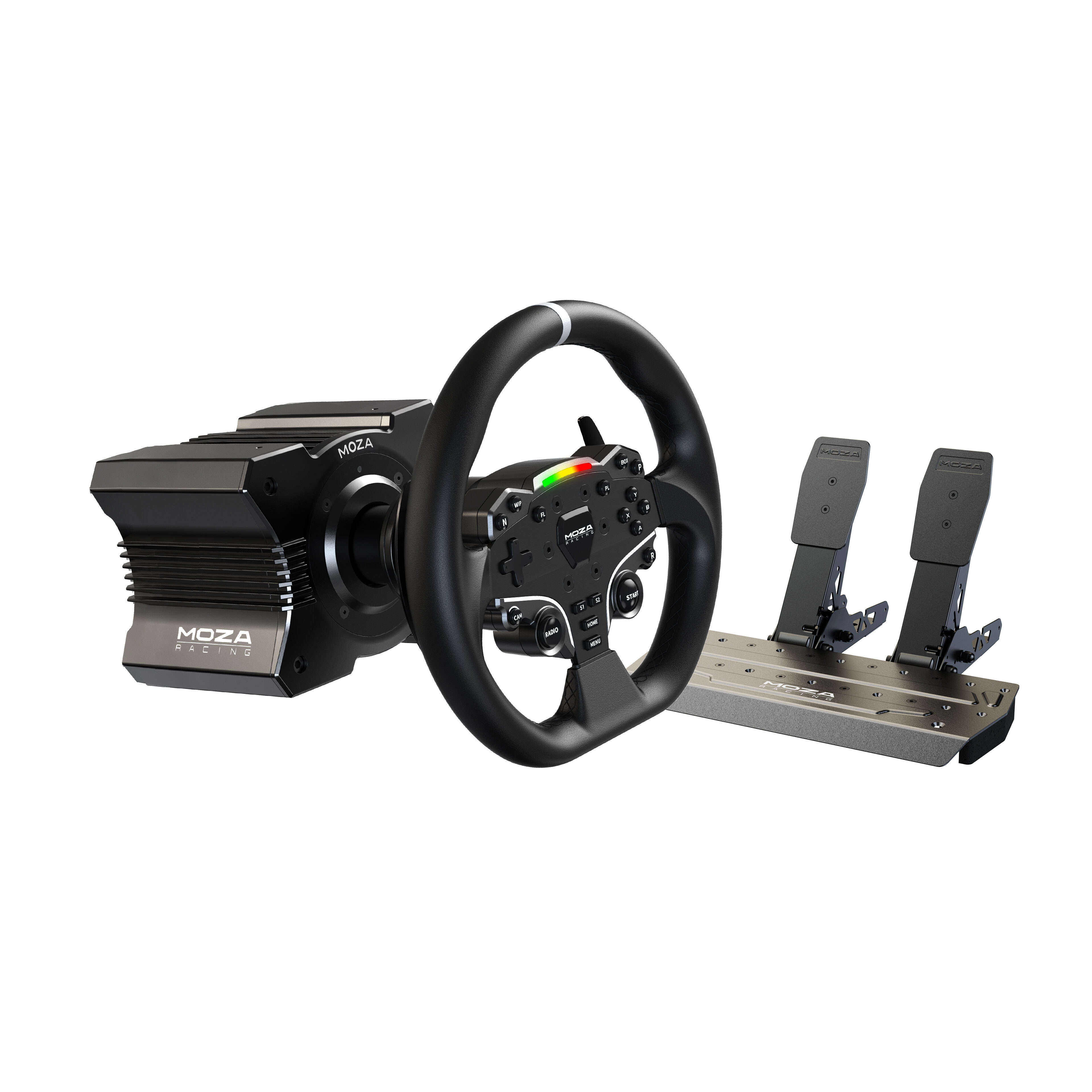 Давно мечтали погонять с друзьями или поучаствовать в гоночных онлайн-чемпионатах, но сомневались какой оборудование купить? Moza R5 Bundle - отличный выбор, потому что включает в себя DD базу, высококачественный руль 28 см с кожаной оплёткой и стальные педали.