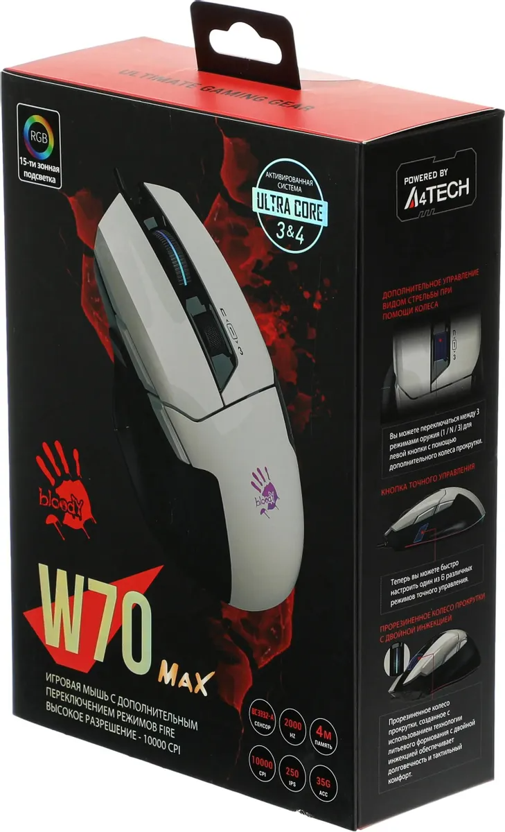 Настрой по-своему подсветку мыши A4Tech Bloody W90 Max чтобы придать ей индивидуальности и преобразить пространство на твоём игровом столе.