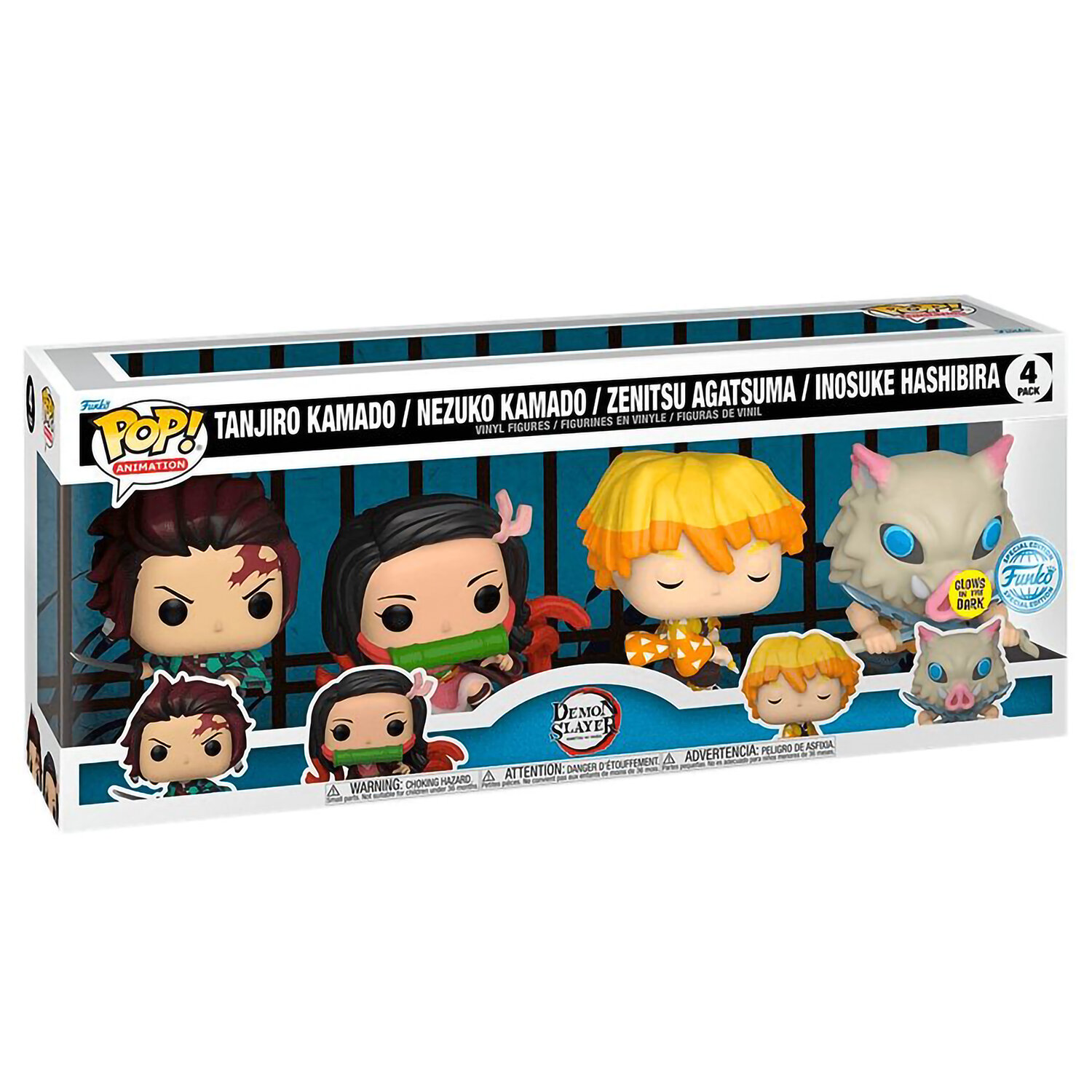 Набор фигурок Funko POP! выполнен по мотивам аниме и манги "Клинок, рассекающий демонов" (Demon Slayer Kimetsu no Yaiba) и изображает команду главных персонажей и охотников на демонов: Тандзиро Камадо, Незуко Камадо, Зеницу Агацуму и Иноске Хашибиру.