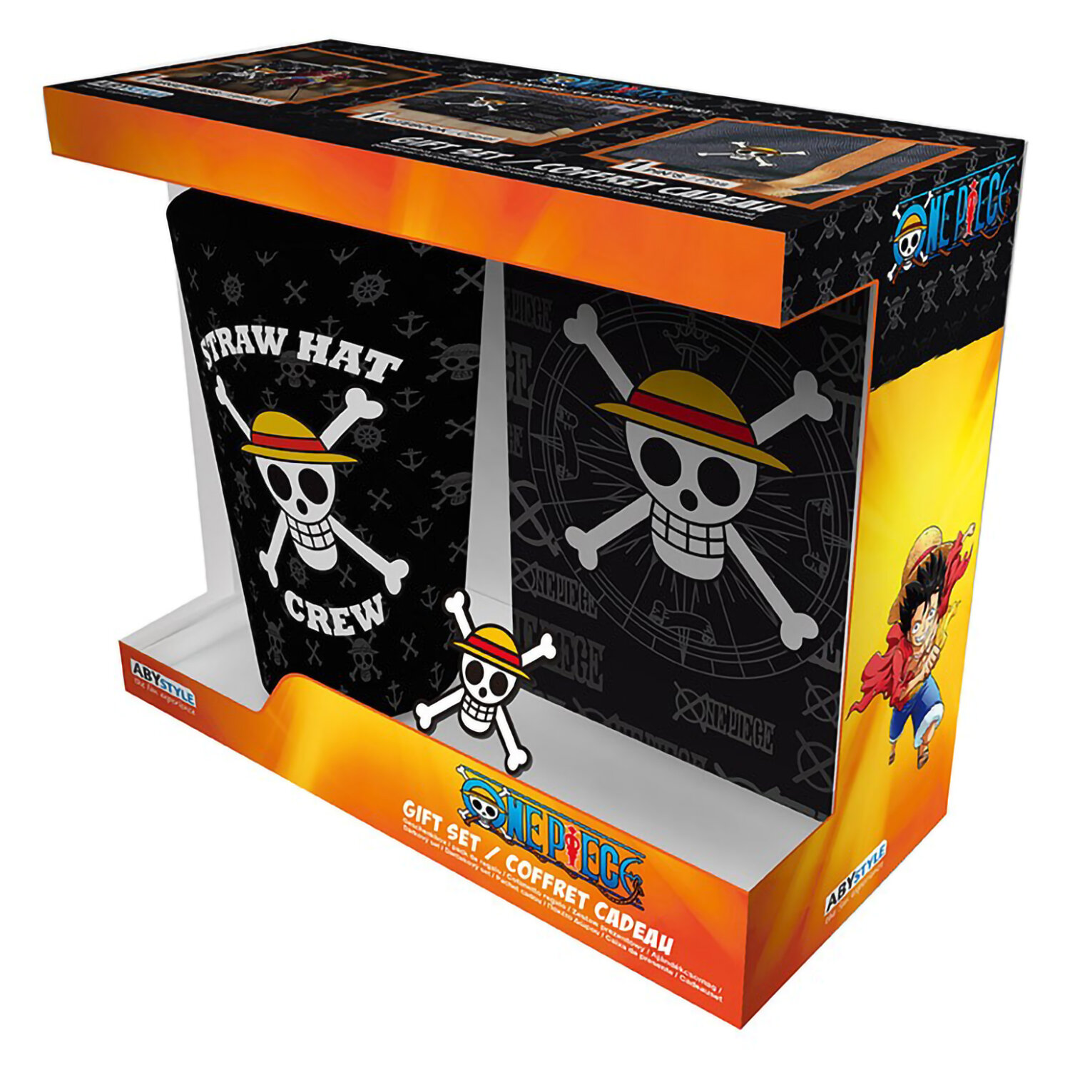 Покорите Гранд Лайн с этим подарочным набором по мотивам аниме и манги "Ван-Пис" (One Piece)! В набор входят бокал, блокнот и пин с изображением Весёлого Роджера пиратов Мугивары.