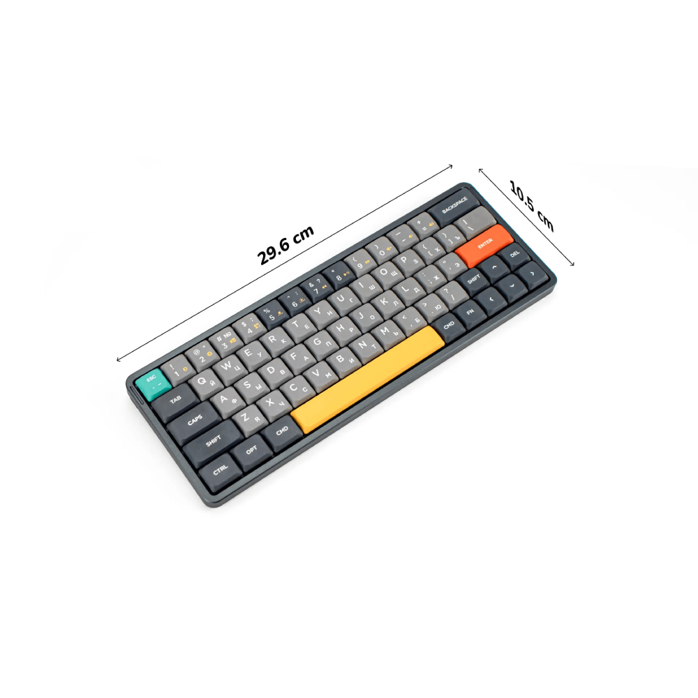 Nuphy Air60 - инновационная ультратонкая клавиатура с форматом 60%. Эта клавиатура идёт с комплекте с самыми тонкими в мире PBT сферическими кейкапами, беспроводным соединением на частоте 2.4Ггц с низкой задержкой, а также возможностью подключить по bluetooth, и функций горячей замены переключателей. Air60 сочетает в себе мощный функционал в небольшом корпусе и подойдёт для использования как со стационарным компьютером, так и с ноутбуком. Для этого в комплекте есть дополнительный кабель с разъёмом USB Type-C длиной 0.2м
