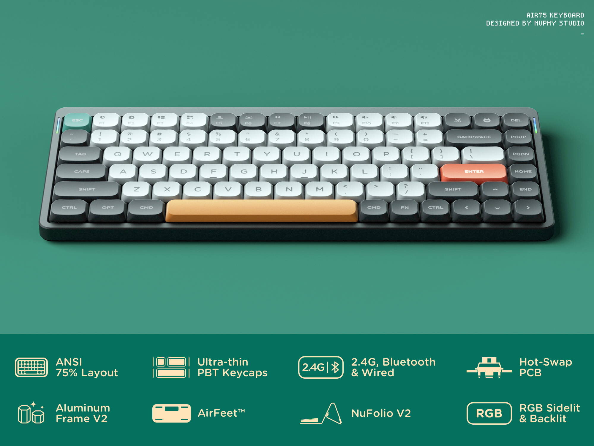 Технология AirFeet второго поколения по-прежнему превосходно совместима почти со всеми MacBook и большинством ноутбуков, что позволяет использовать Air75 в качестве клавиатуры для ноутбука, когда это необходимо.