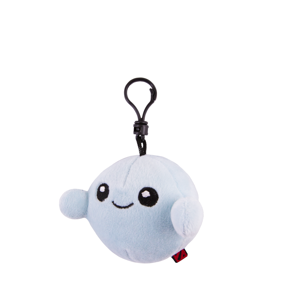 Пластиковый карабин надежно фиксирует игрушку на рюкзак или ремень.
