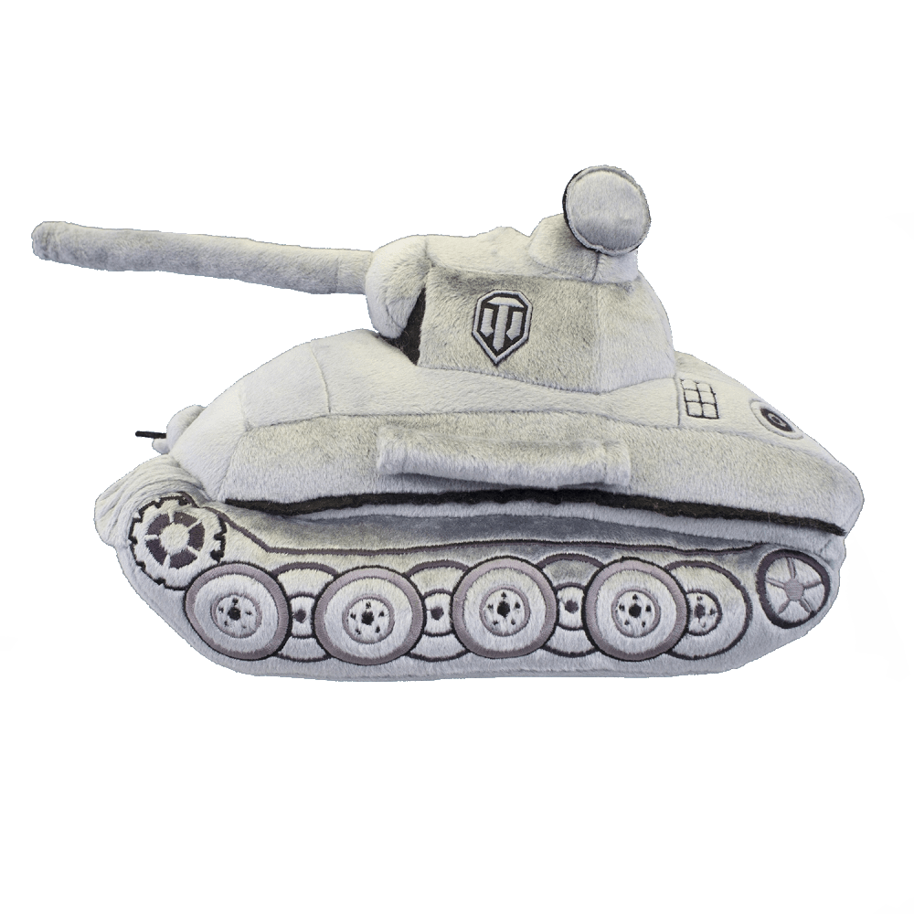 Плюшевая игрушка в виде танка Пантера серого цвета. Рисунок гусениц, люков, на башне, и спереди танка, выполнены вышивкой. С боков танка подвесные топливные баки продолговатой, цилиндрической формы. Под башней, спереди танка имеется ствол пулемета. Оригинальный подарок для фаната игры World of Tanks.