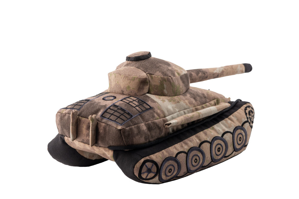 Гусеницы и другие элементы танка сделаны вышивкой. Сбоку размещен логотип World of Tanks. Фигурка плюшевого танка изготовлена из качественных гипоаллергенных материалов. Высота изделия 16 см