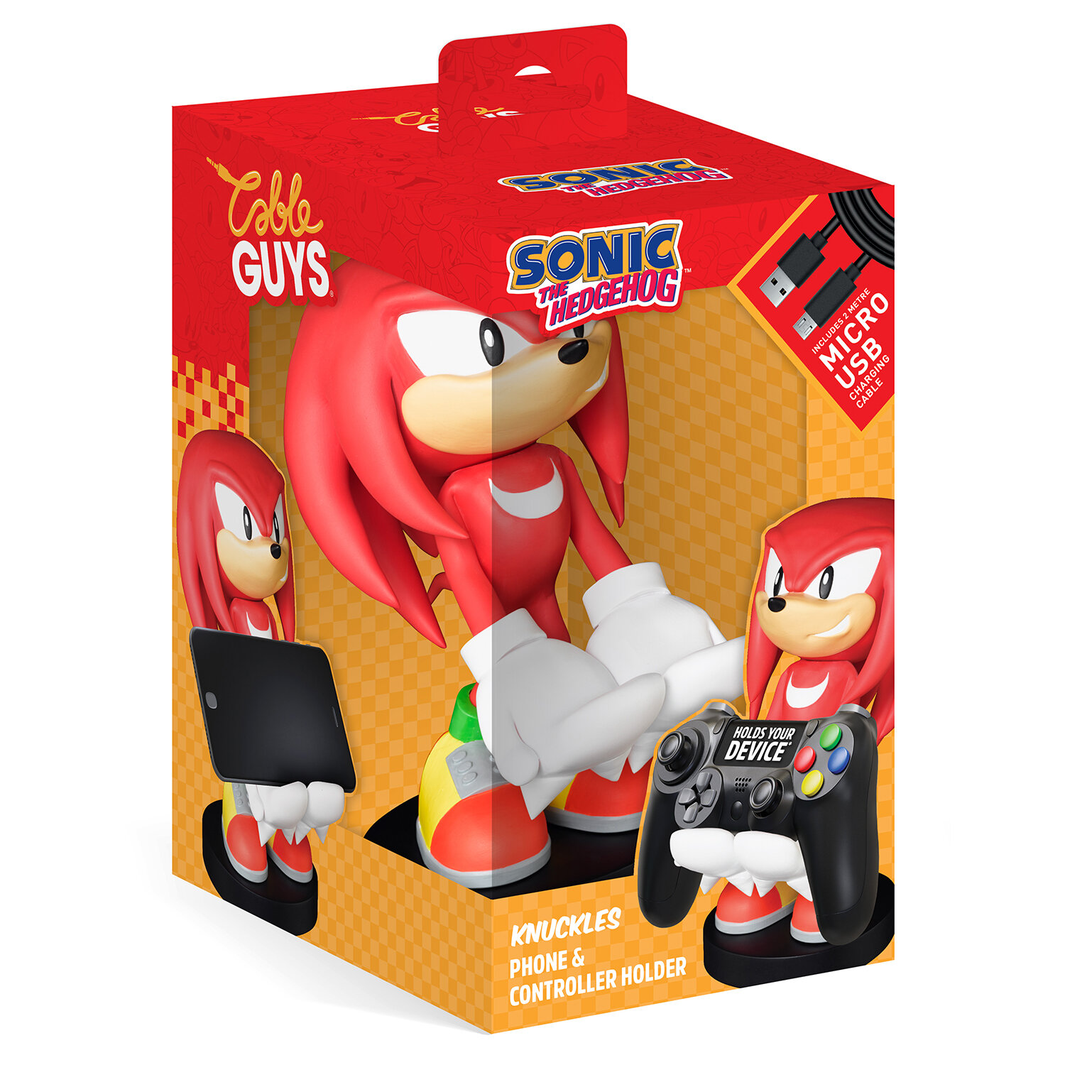 Лицензионная подставка-держатель для телефона, игрового контроллера или чего захотите! 25-сантиметровый Наклз из серии игр Sonic всегда готов помочь подержать ваш телефон, геймпад или портативную консоль, пока идет зарядка. В комплекте шнур USB C на 2 метра, чтобы точно дотянуться до зарядного устройства. Можно использовать свой шнур.