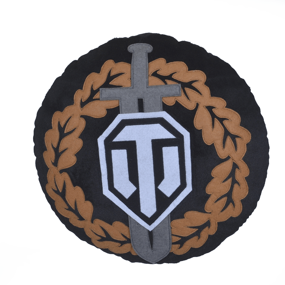 Круглая декоративная подушка с логотипом игры World of Tanks специально создана для поклонников популярной во всём мире киберспортивной игры. На лицевой стороне подушки аппликация венка из коричневых дубовых листьев, серого меча и логотипа игры «World of Tanks».Игрушка создана из безопасных материалов, не вызывающих аллергию. Оригинальный подарок для фаната игры WoT и украшение для авто.